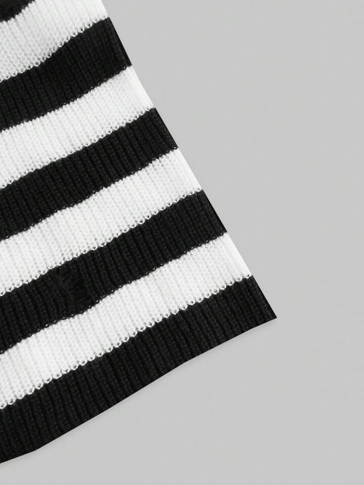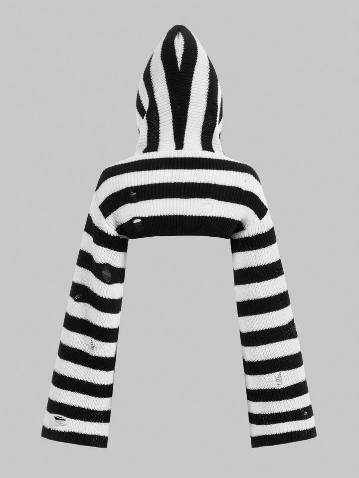 Grunge Punk Suéter Con Capucha Súper Corto Y Rayado Para Mujeres