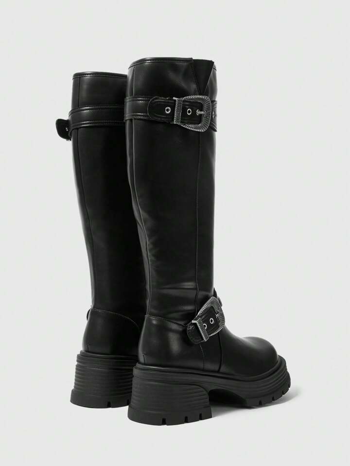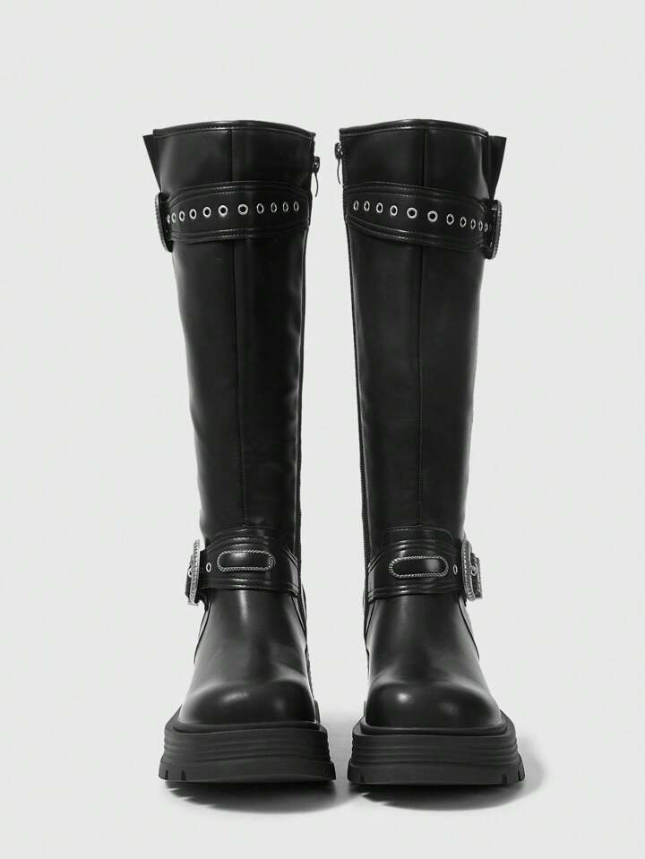 Grunge Punk Botas de media pantorrilla con suela gruesa y estilo vintage británico para mujer, nuevas para Año Nuevo y fiestas