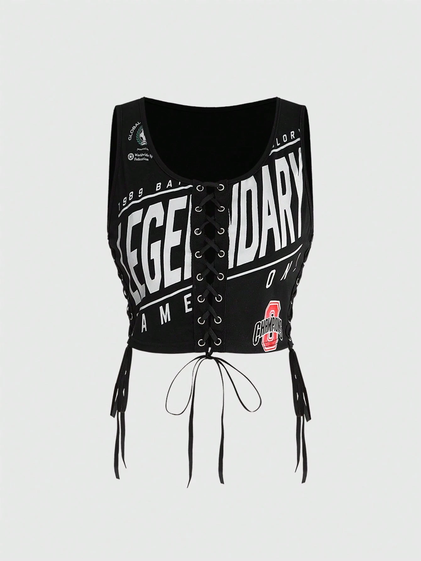 Grunge Punk Camiseta de tirantes ajustada con estampado de insignia con eslogan para mujer