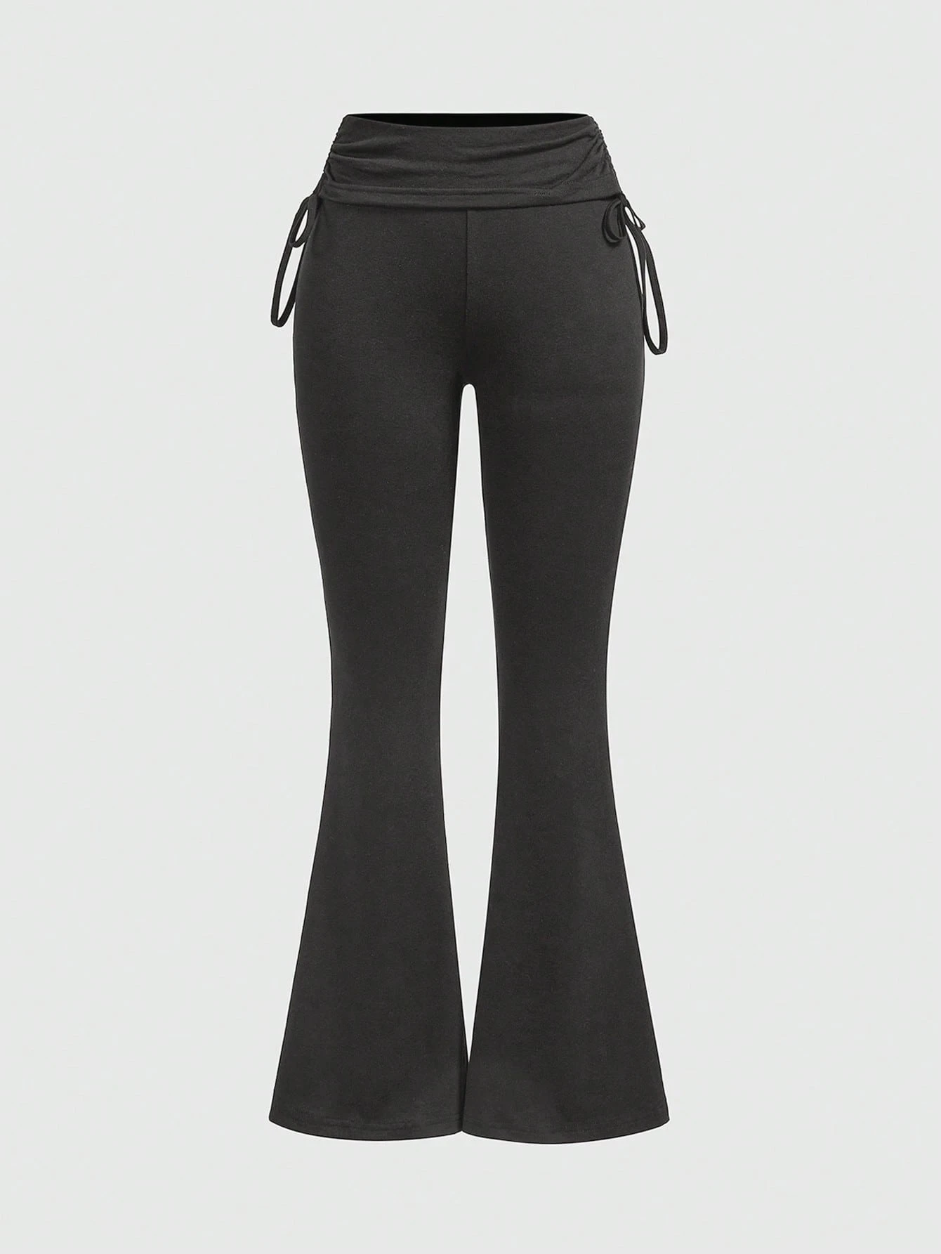 Grunge Punk Pantalones acampanados con cordón negro versátiles para mujer