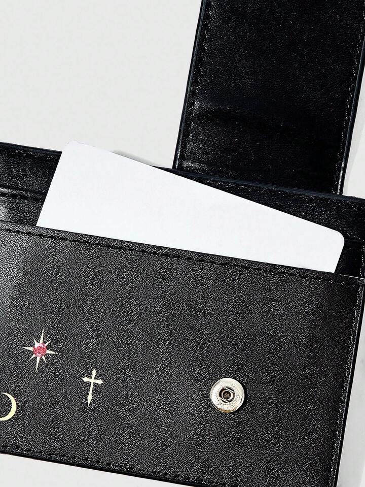 Grunge Punk Portacartas portátil de mujer con diseño vintage lindo de corazón y cruz