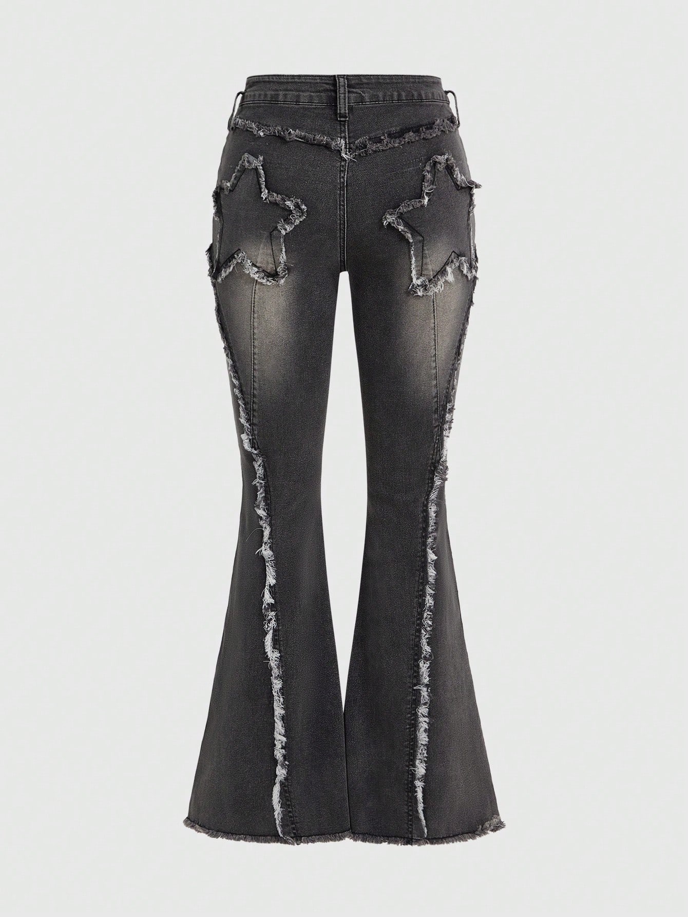 Grunge Punk Jeans de pierna acampanada con parches de estrella, bajo deshilachado, estilo callejero estadounidense Y2K Baddie