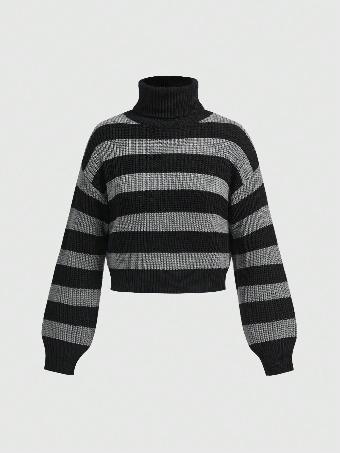 Grunge Punk Suéter de cuello alto con mangas farol a rayas negro y gris, estilo retro punk, versátil y casual para el estilo Y2K