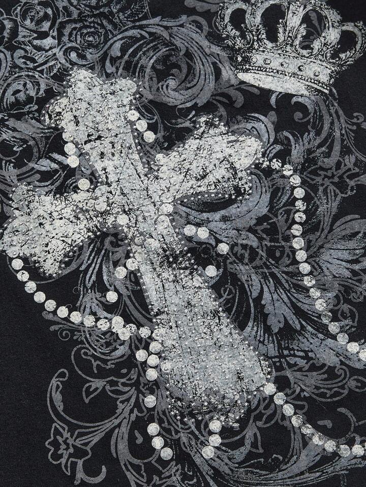 Grunge Punk Camiseta 2-en-1 con estampado de vid de cruz y perla con efecto desgastado, estilo Y2K