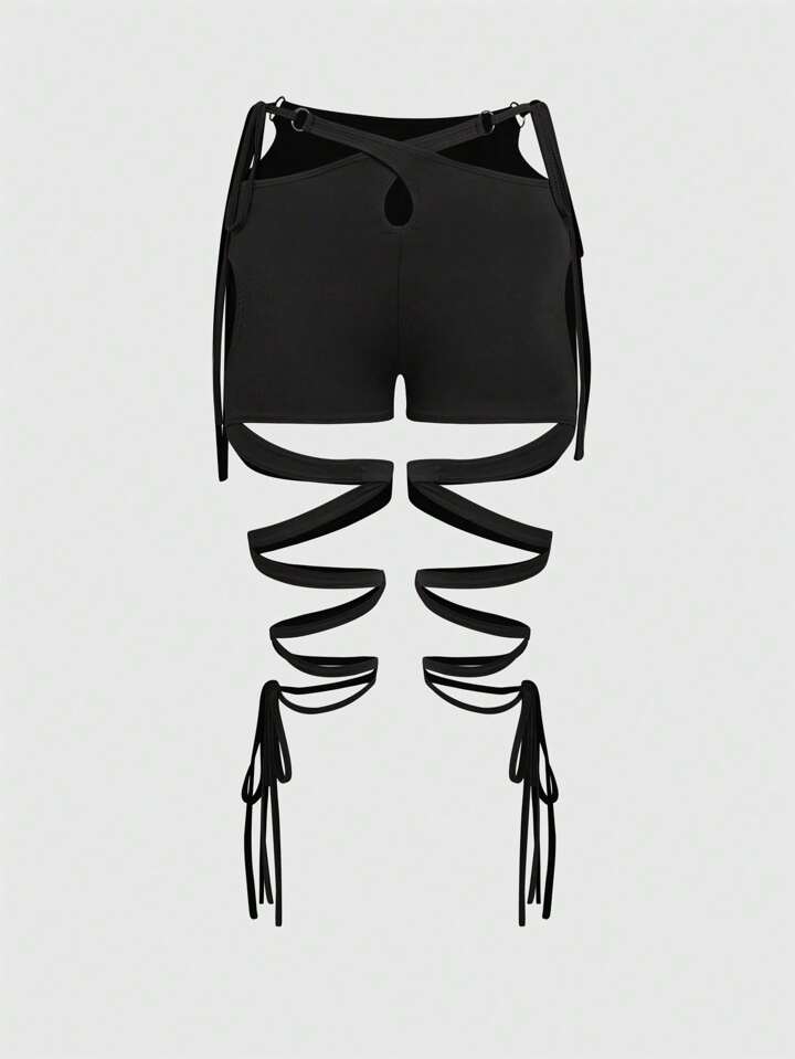 Grunge Punk Shorts ajustables con cordones y diseño hueco funcional de estética Y2K para mujeres