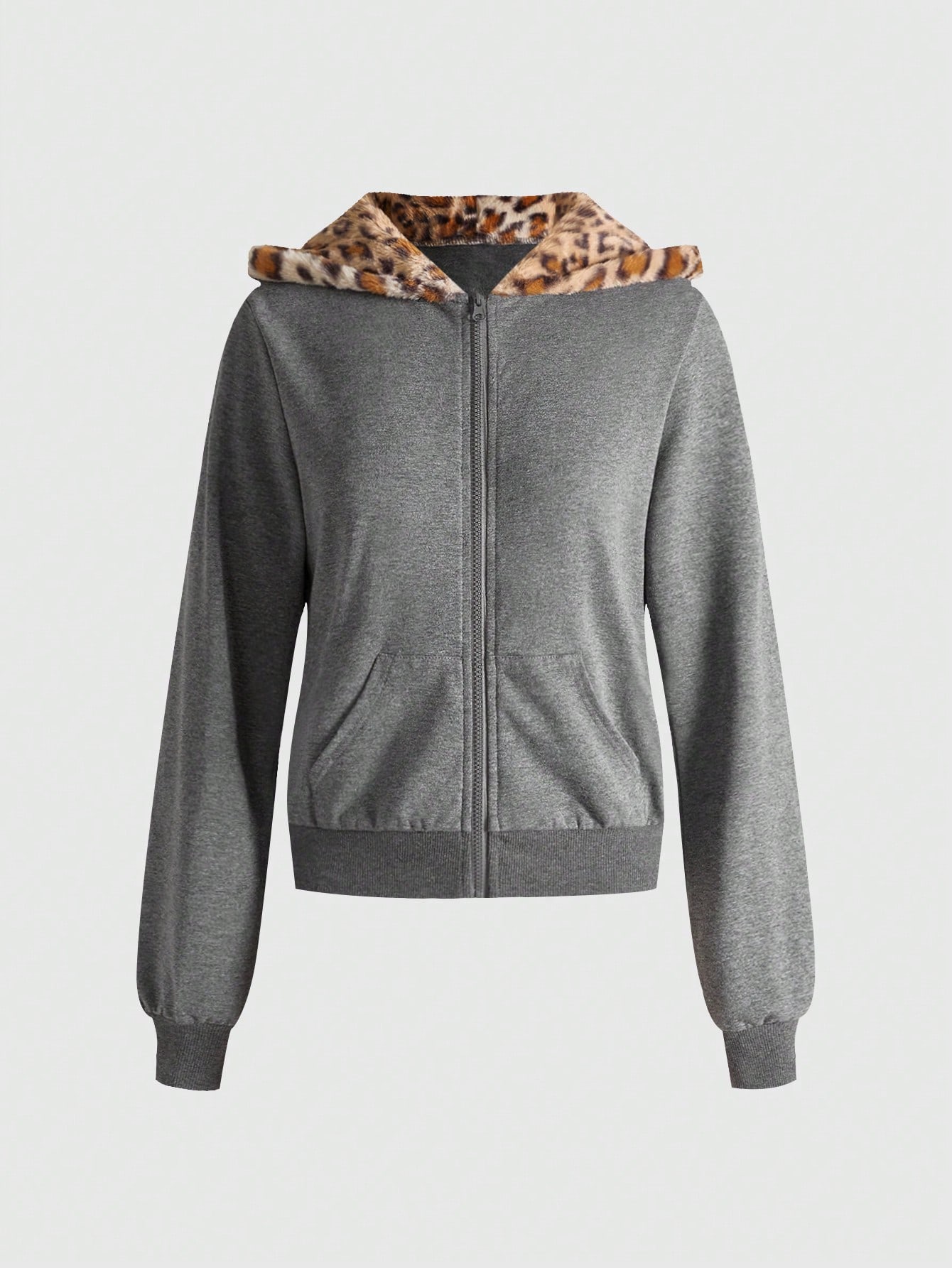 Grunge Punk Sudadera corta con capucha de parches de estampado de leopardo y peluche con ajuste ceñido, estilo Y2K