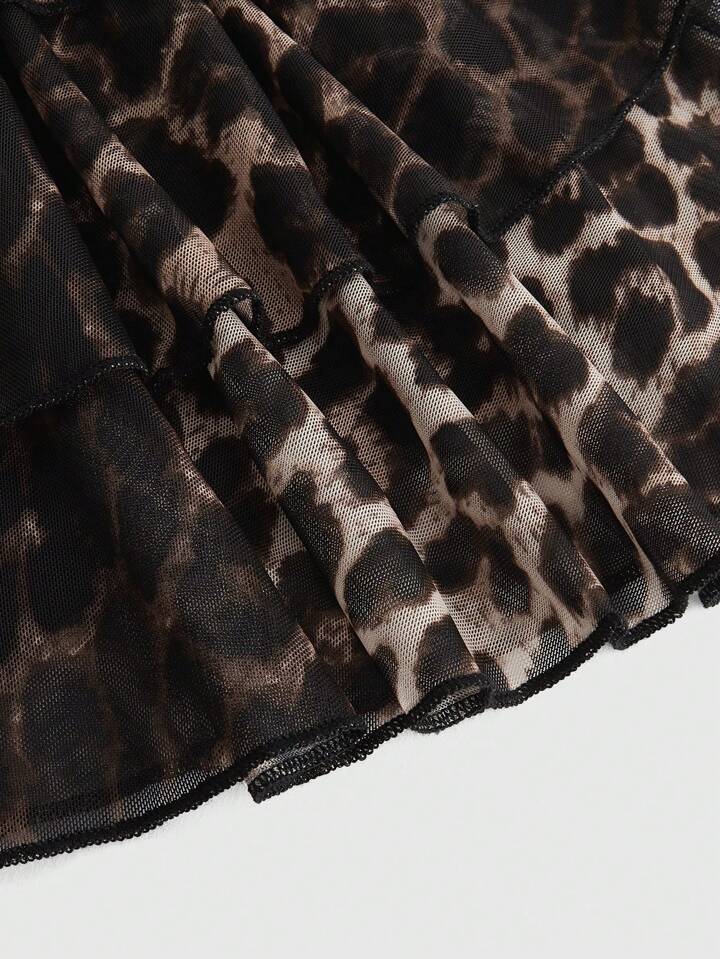 Grunge Punk Falda asimétrica de mujer con estampado de leopardo y capas, estilo Harajuku Y2K