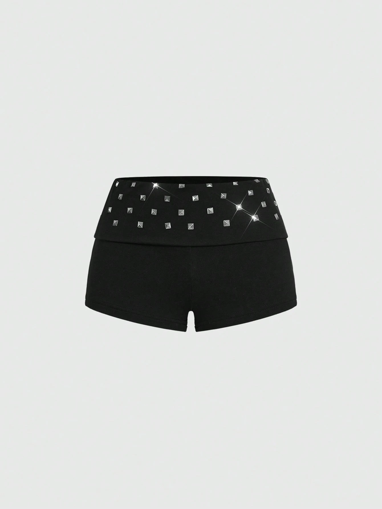 Grunge Punk Pantalones cortos de mujer de cintura baja con lentejuelas metálicas estilo Y2K