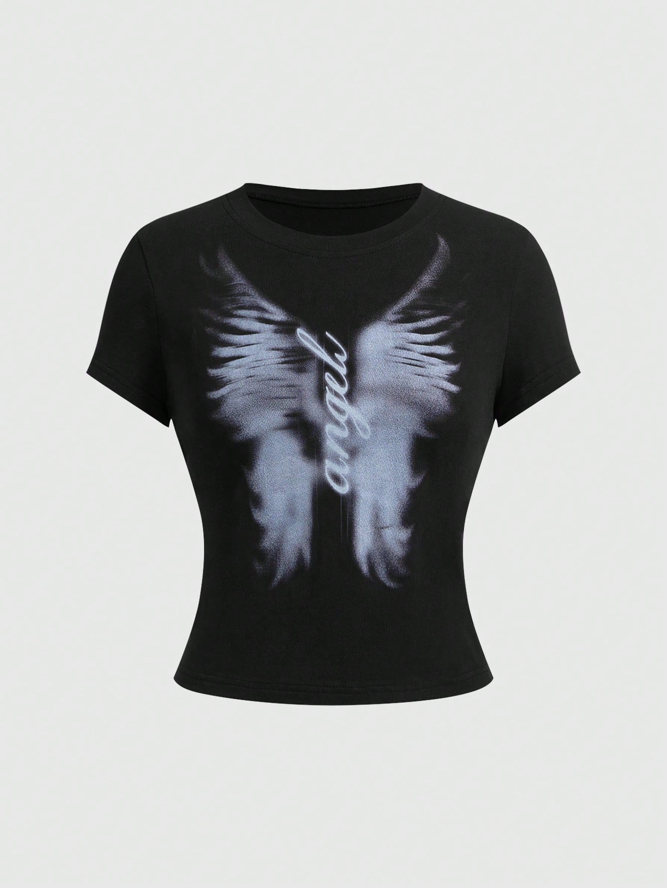 Grunge Punk Top corto ajustado con estampado de mariposa y texto en inglés, estilo Y2K punk