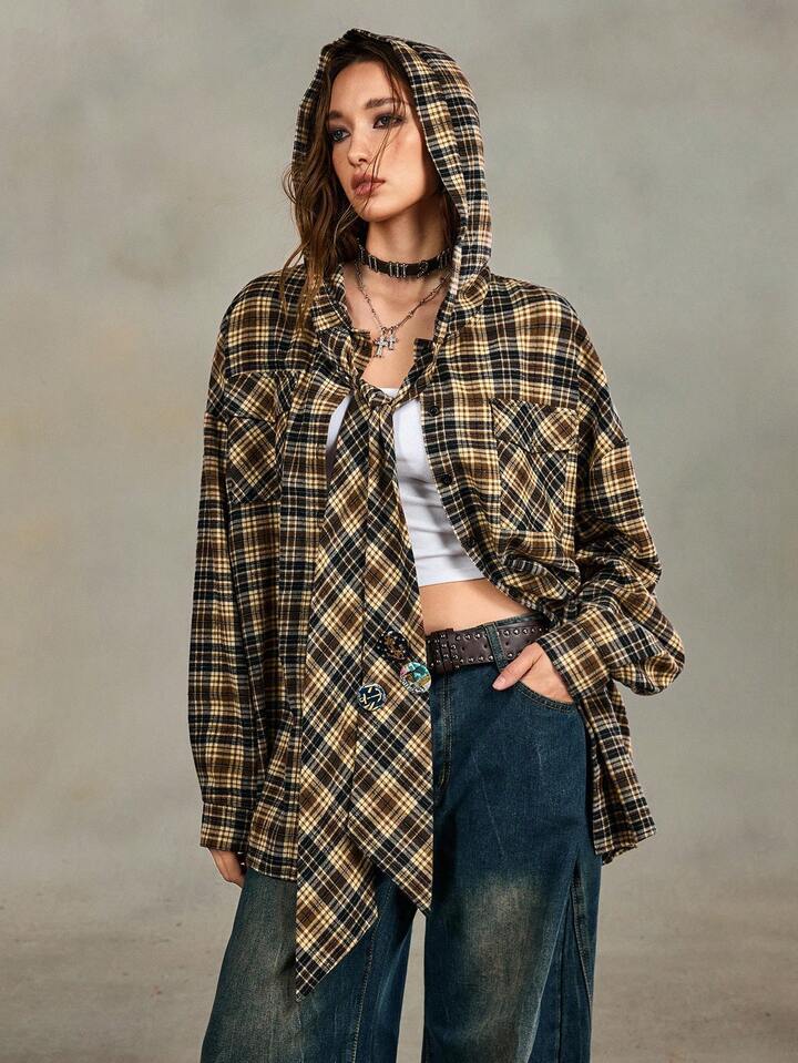 Grunge Punk Camisa con capucha oversize a cuadros de estilo vintage punk Y2K