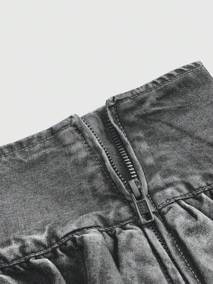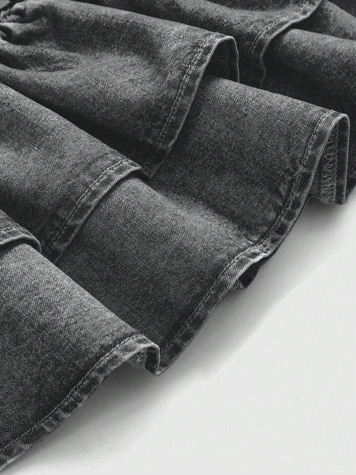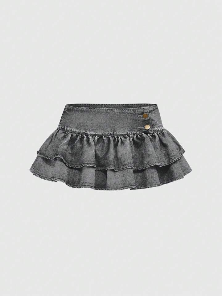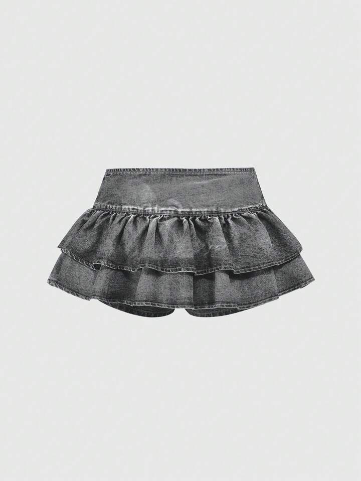 Grunge Punk Minifalda vaquera azul de cintura baja sexy con doble volante en el bajo, estilo retro Y2K