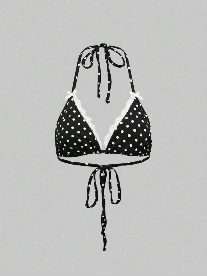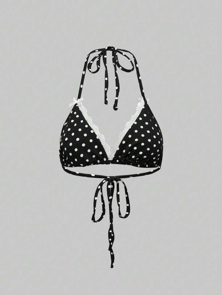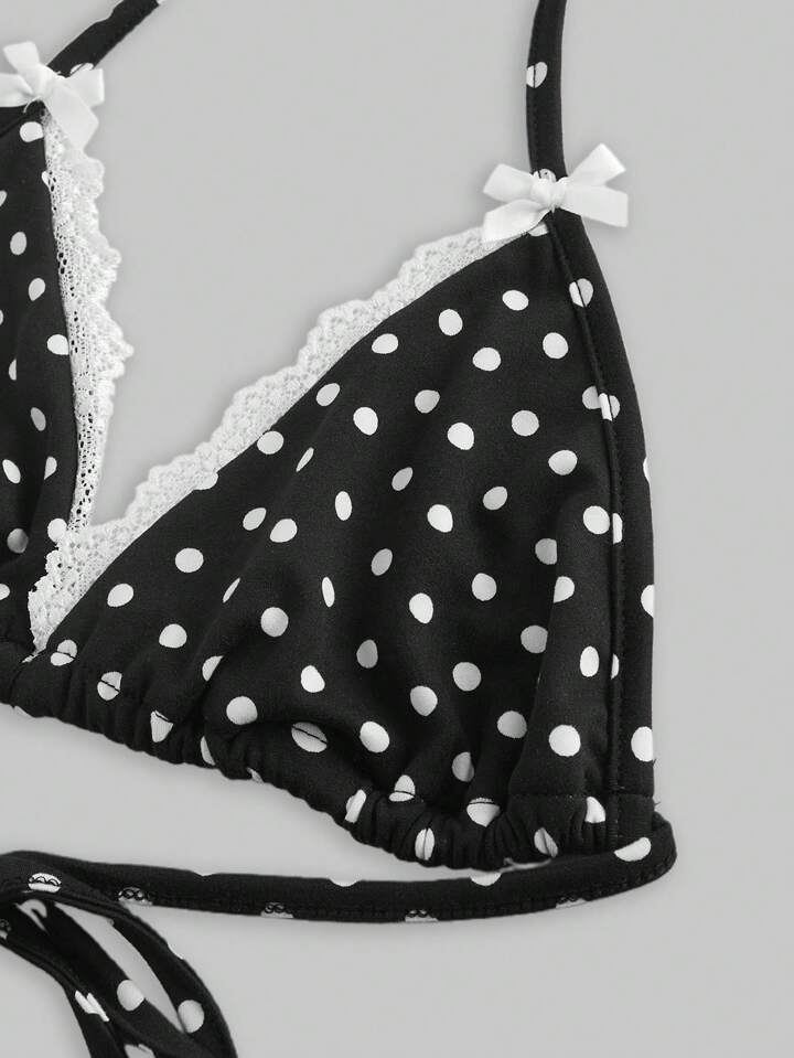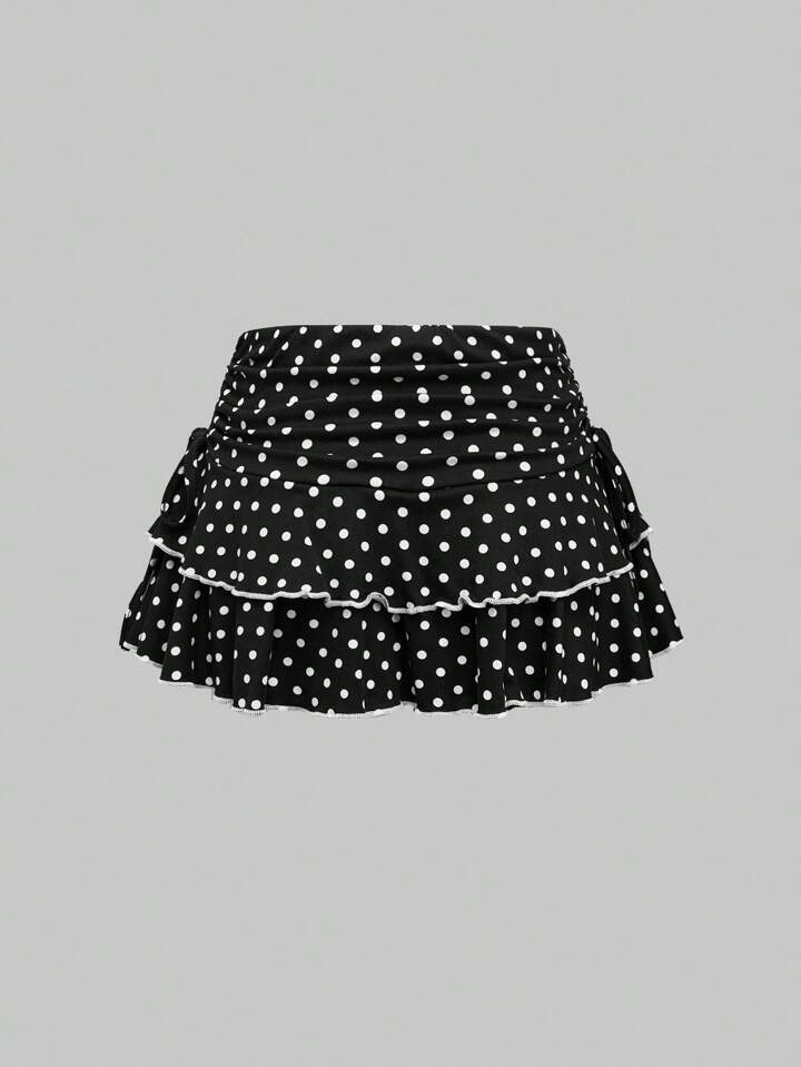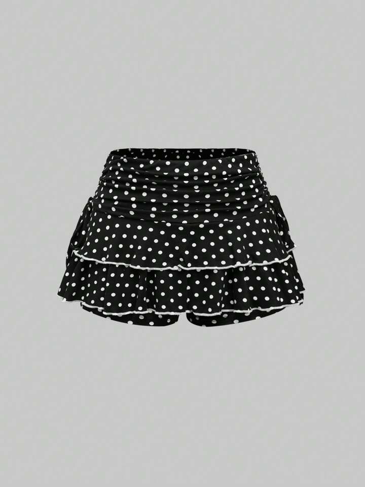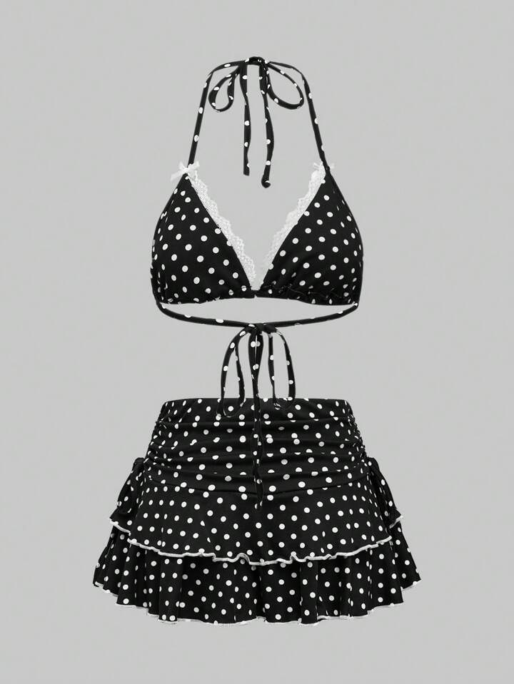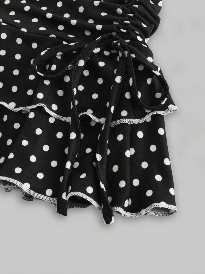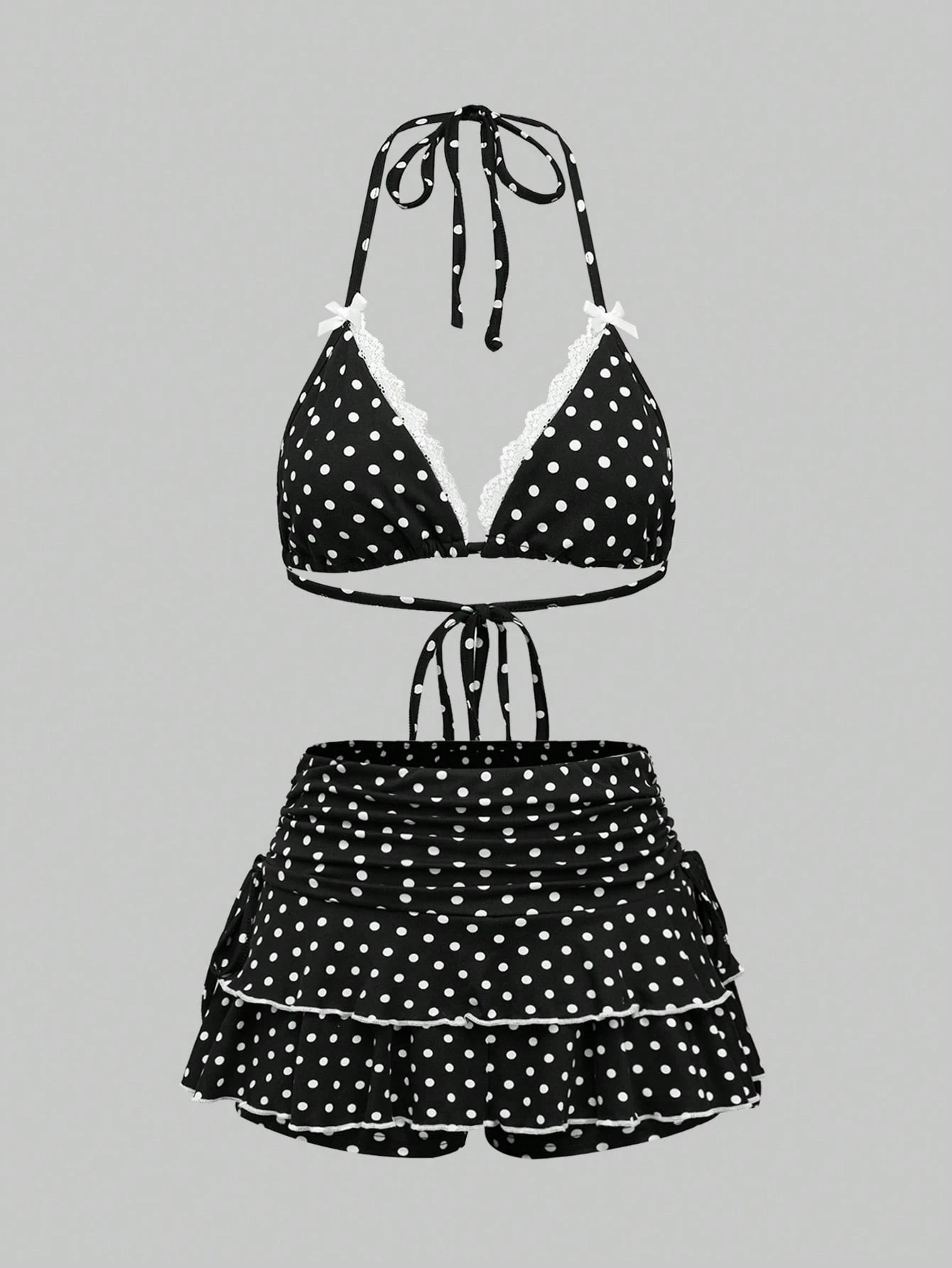 Grunge Punk Conjunto de 2 piezas con top triángulo estampado con lunares y falda corta súper arrugada de cintura baja al estilo vacacional Y2K sexy