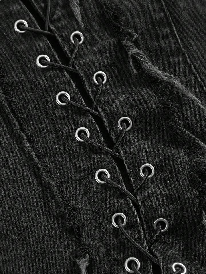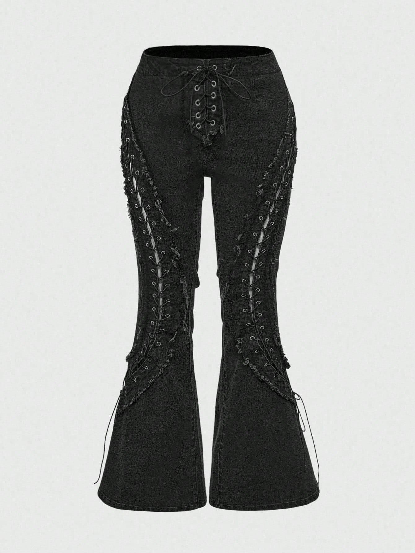 Grunge Punk Jeans de pierna acampanada ajustados con decoración de cordón y perforación, de talla grande, en estilo Y2K sexy