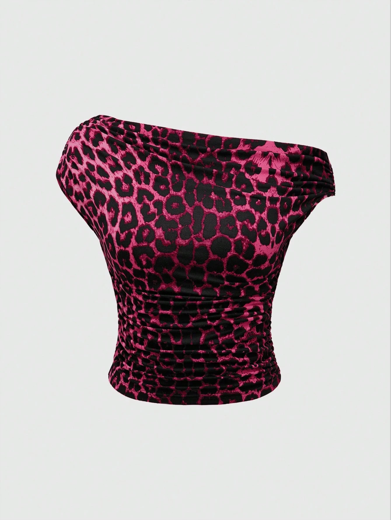 Grunge Punk Camiseta de mujer con estampado de leopardo, ajustada y asimétrica con pliegues, estilo chic de Shibuya Y2K