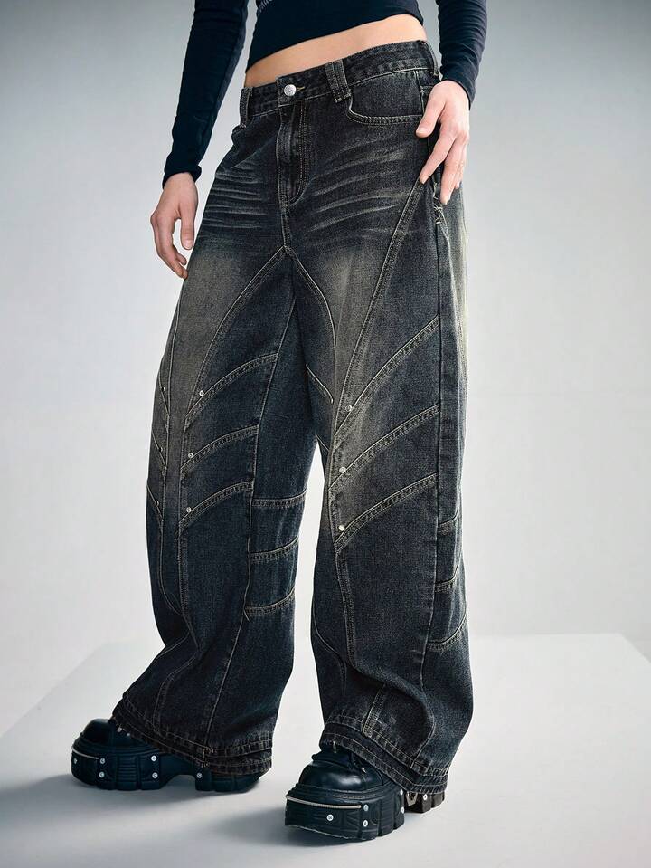 Grunge Punk Jeans holgados con decoración de remaches desconstructivos, estilo chic de streetwear Y2K para mujeres