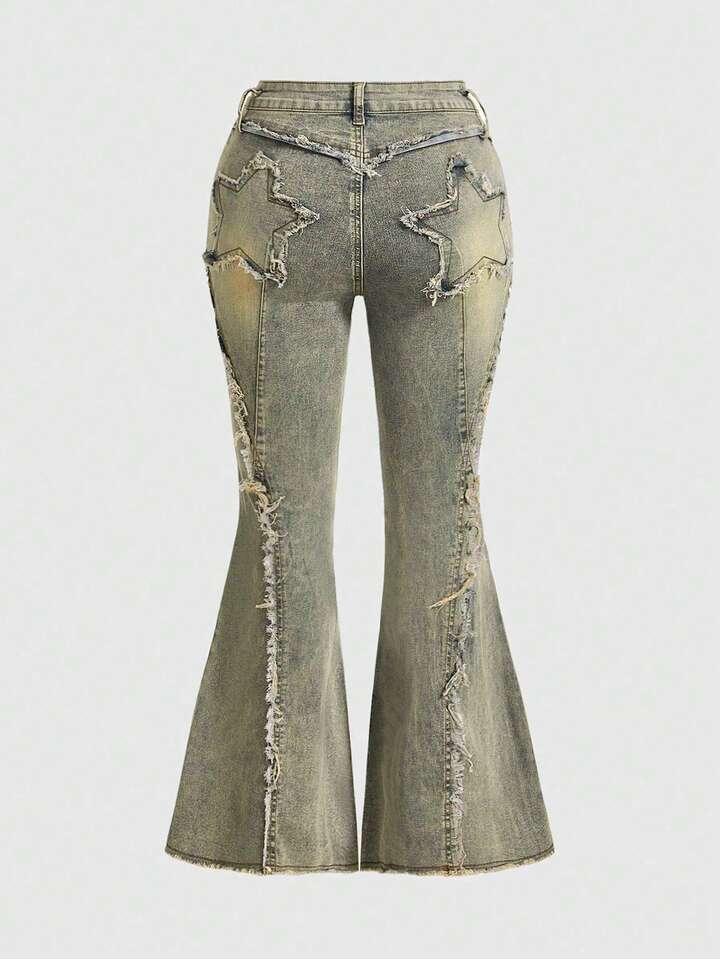 Grunge Punk Jeans de campana con parches de estrellas en estilo Y2K para tallas grandes