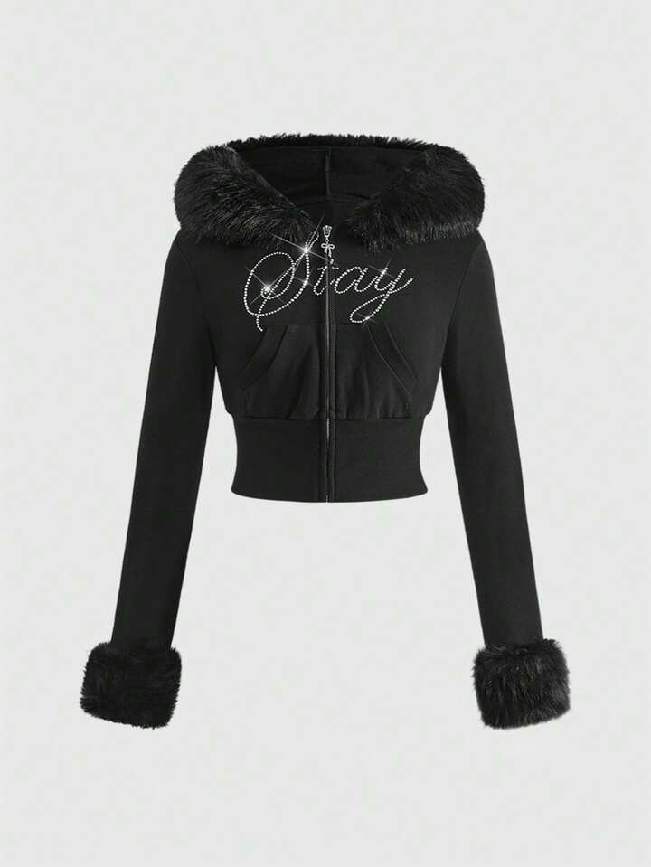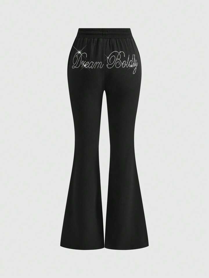Grunge Punk Conjunto de 2 piezas de top corto y leggings con decoración de rhinestones en estilo Y2K