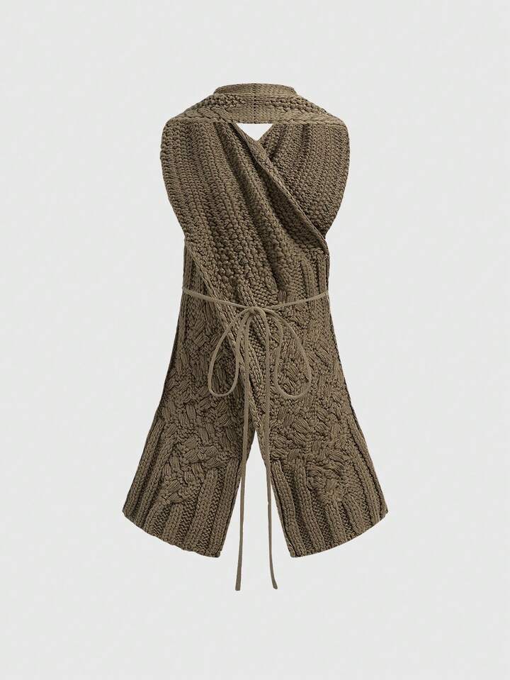 Grunge Punk Suéter de punto con escote halter, espalda descubierta y cordones, estilo vintage Y2K sexy