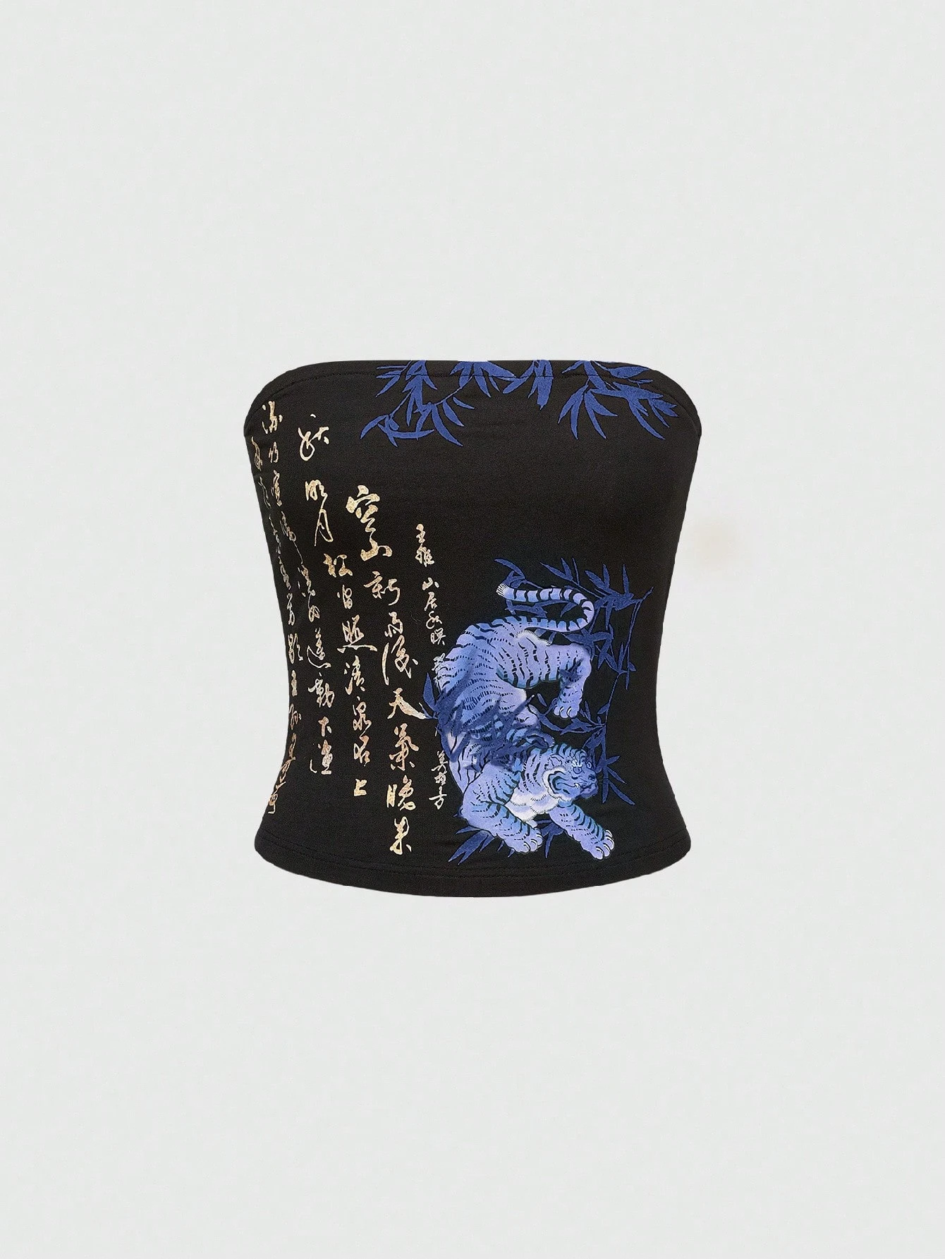 Grunge Punk Top bandeau ajustado con estampado de tigre y caligrafía de subcultura vintage Y2K para mujeres