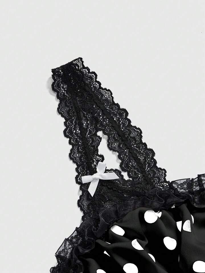 Grunge Punk Top sin mangas de mujer con lunares y encaje en contraste, regalo del Día de San Valentín