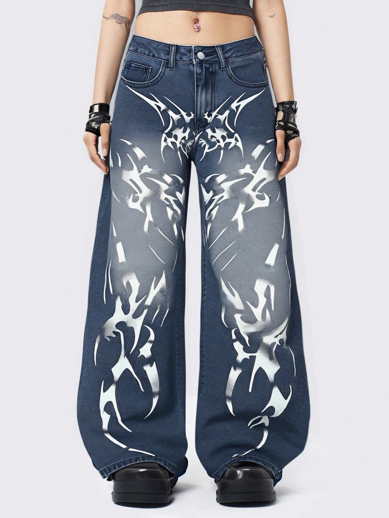 Grunge Punk Jeans holgados y de pierna ancha para mujer con patrón único de estilo callejero de carnaval Y3K
