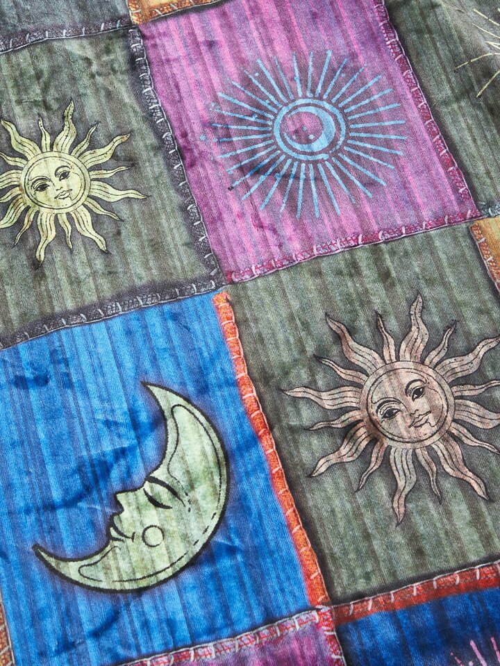 Vestido con estampado de sol y luna con encaje en contraste de manga con volante
