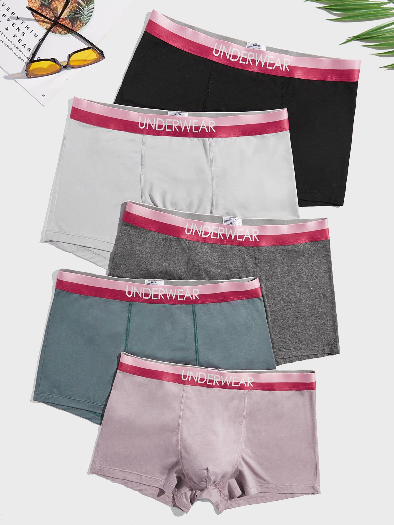 Hombres 5 piezas Calzoncillos boxer de cintura con cinta con letra