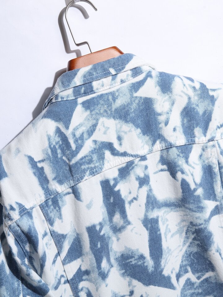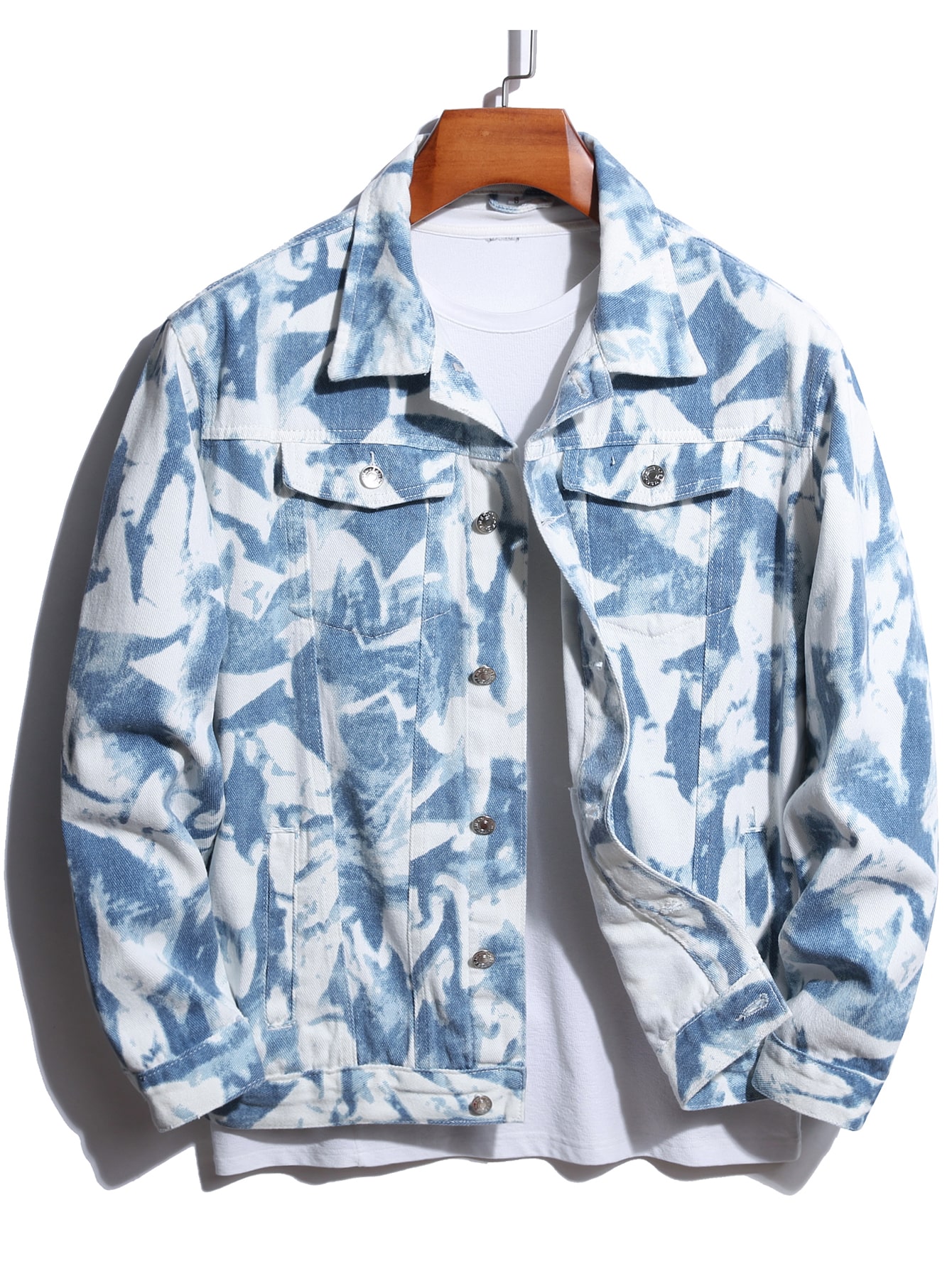 Hombres Cazadora mezclilla con estampado con bolsillo con solapa