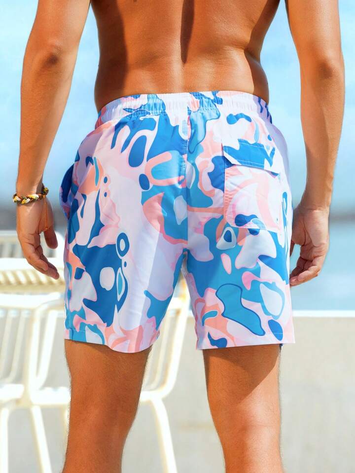 Hombres Shorts de natación con estampado con parche de letra de cintura con cordón