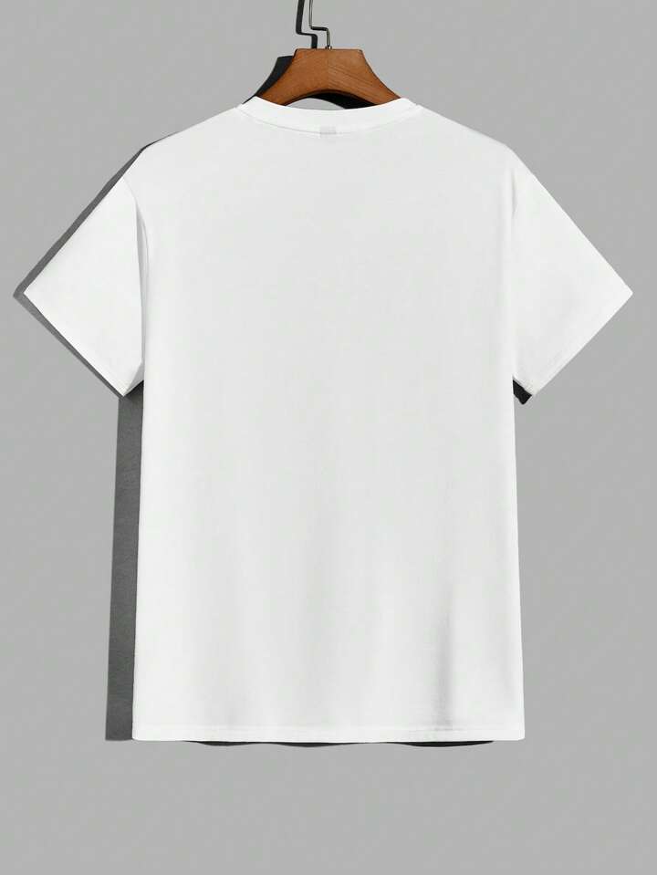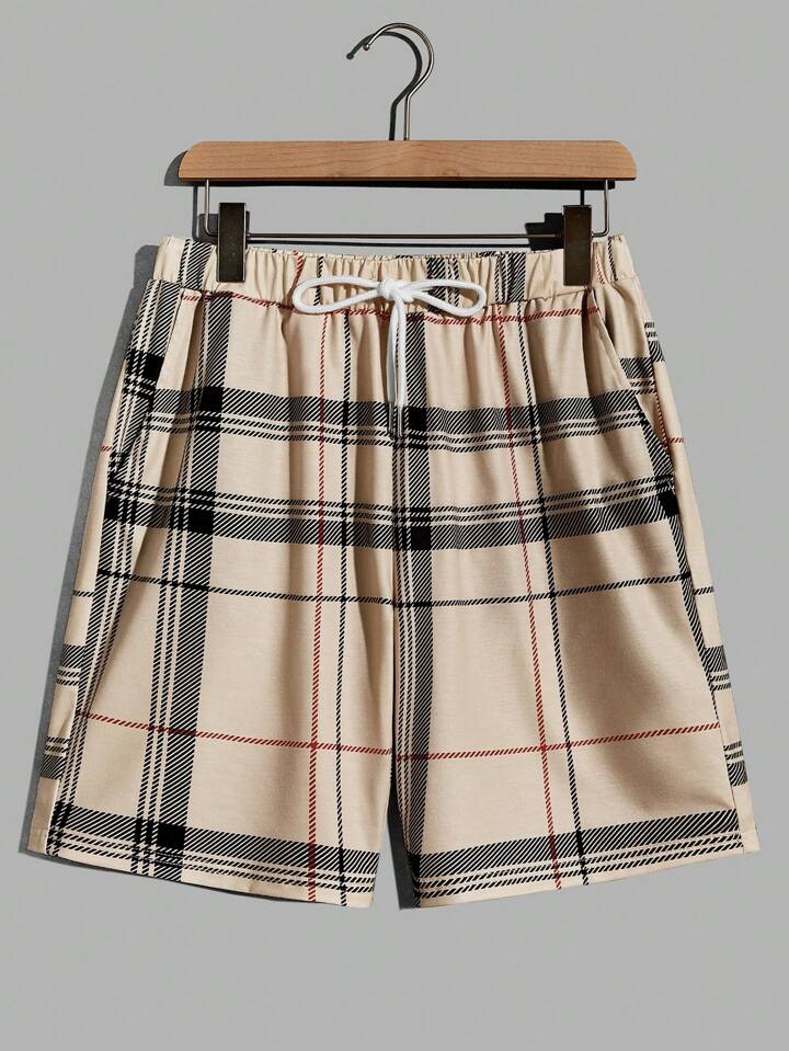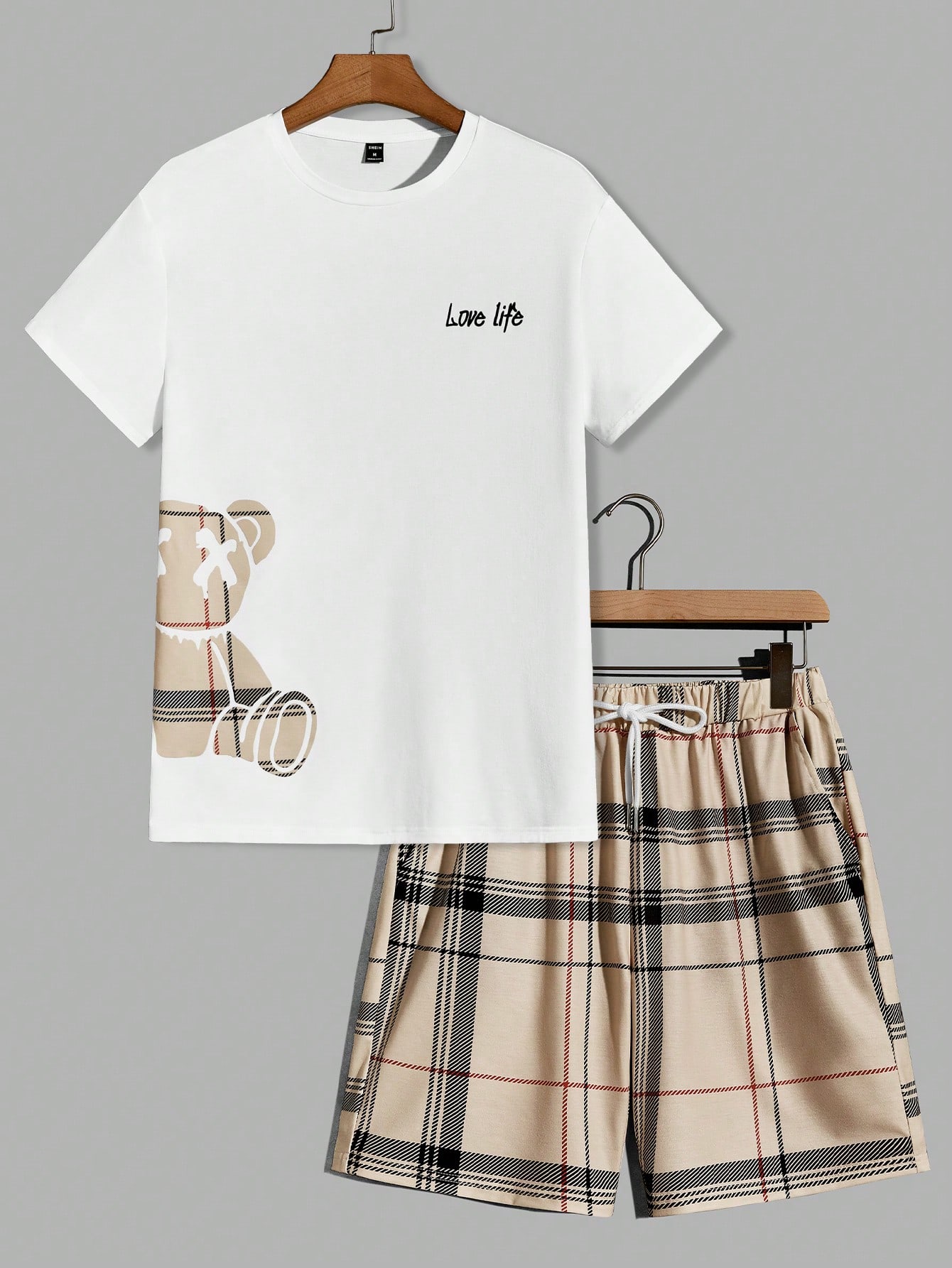 Hombres Camiseta algodón con estampado de oso y letra & Shorts con estampado de cuadros