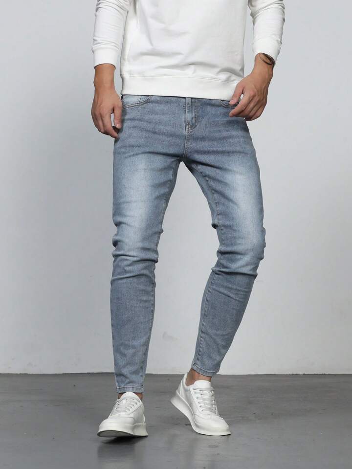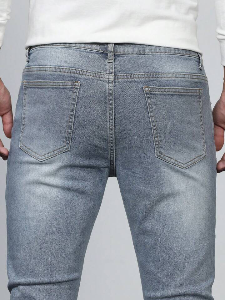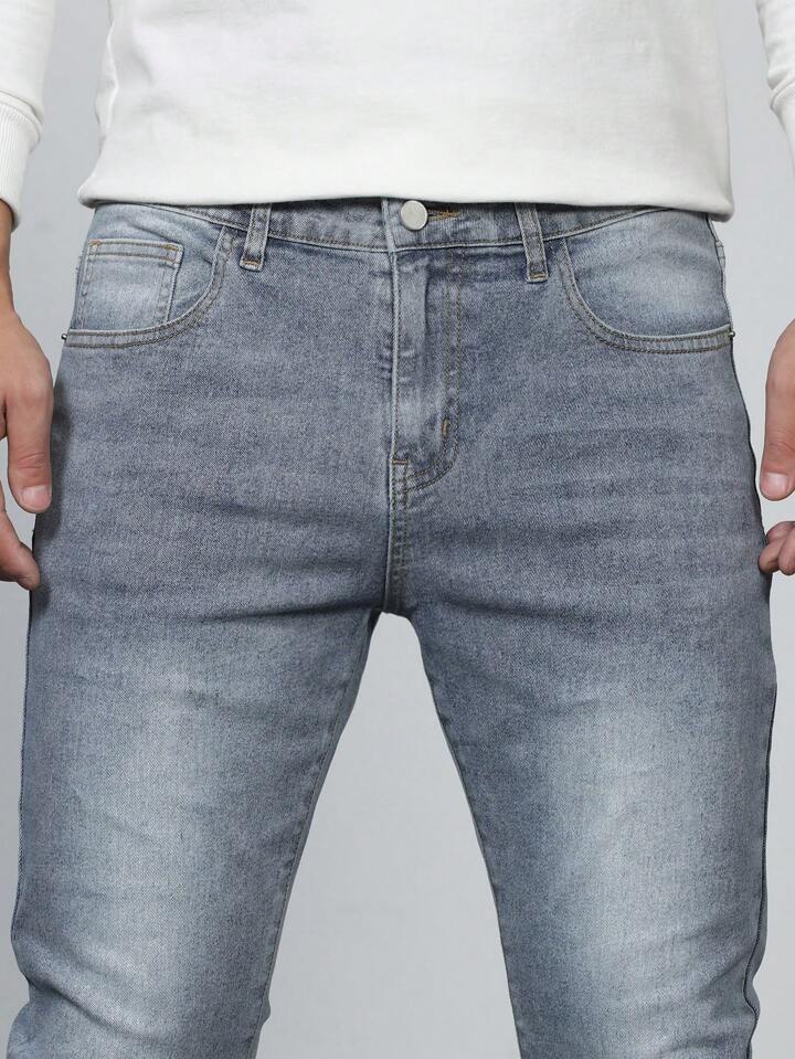 Jeans de algodón para hombres con lavado de lejía, ajuste delgado y largo, ácido oscuro, cargo, azul liso, trabajo informal de negocios para esposo