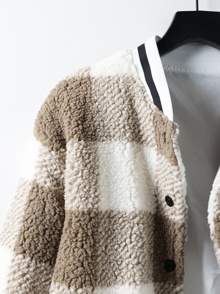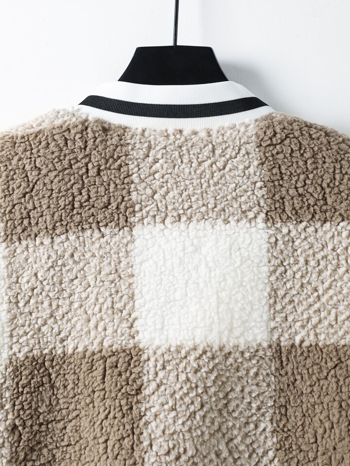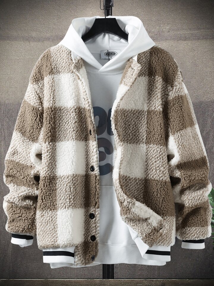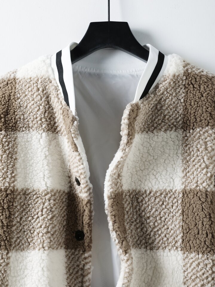 Hombres de cuadros con estampado teddy Cazadora tipo bomber sin Capucha