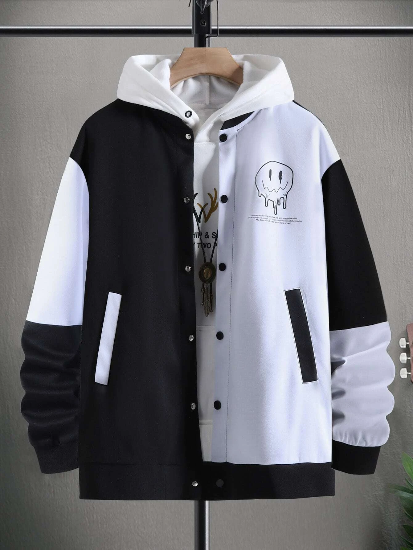 Hombres Cazadora tipo bomber con estampado de dibujos animados de dos tonos sin capucha