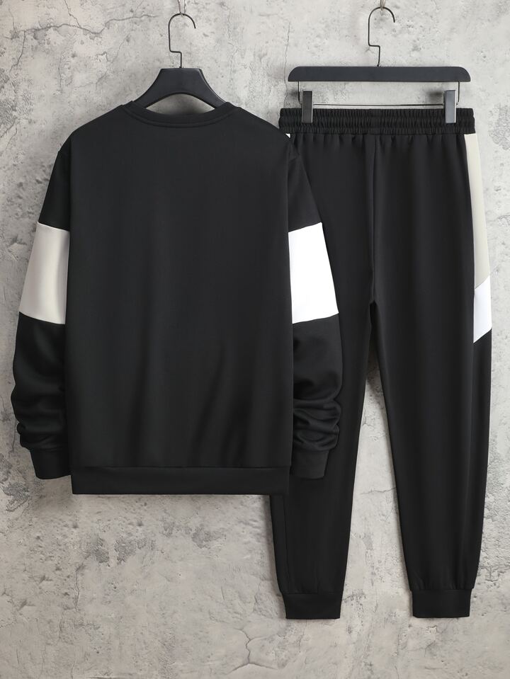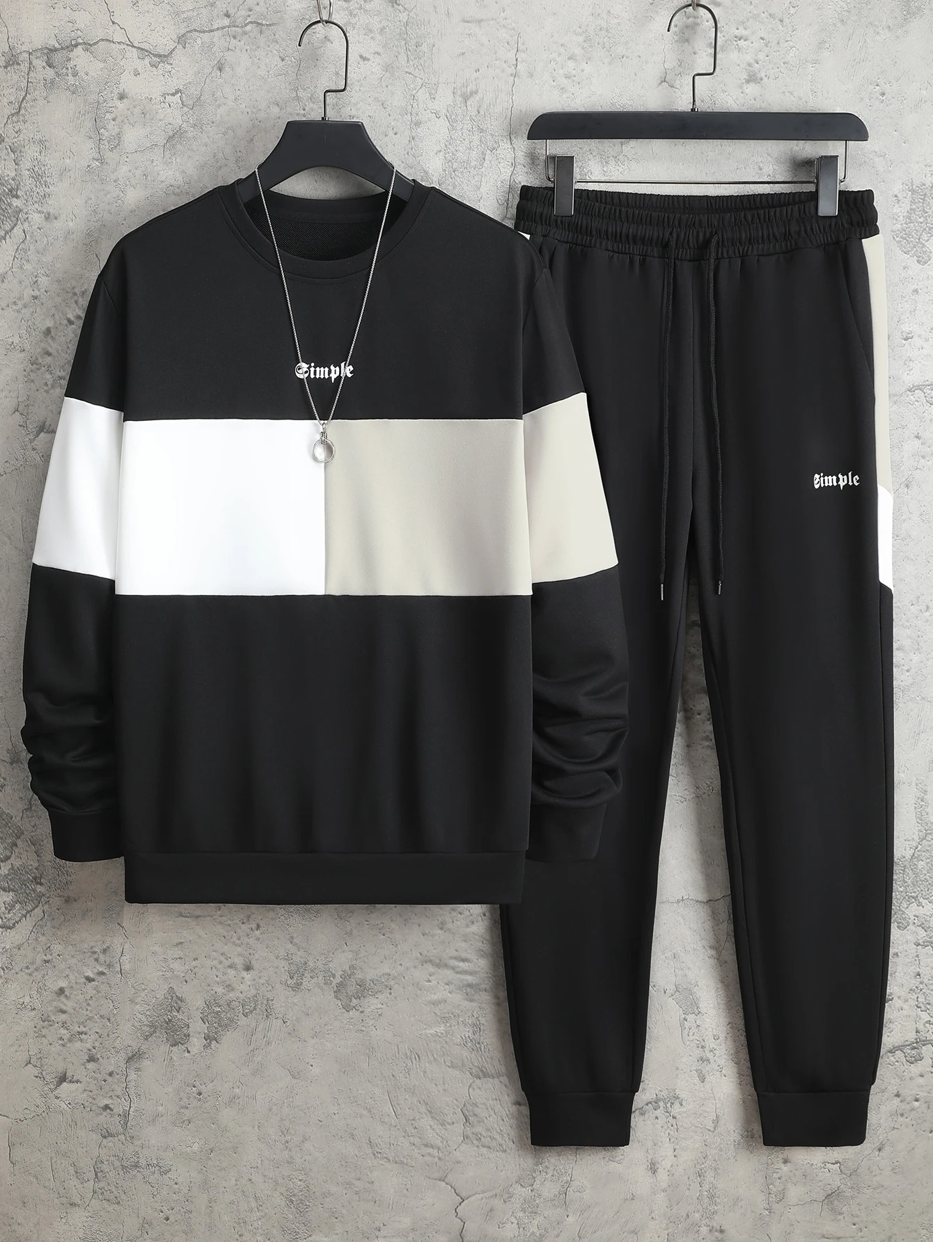 Hombres Sudadera con estampado de letra de color combinado & Pantalones deportivos de cintura con cordón