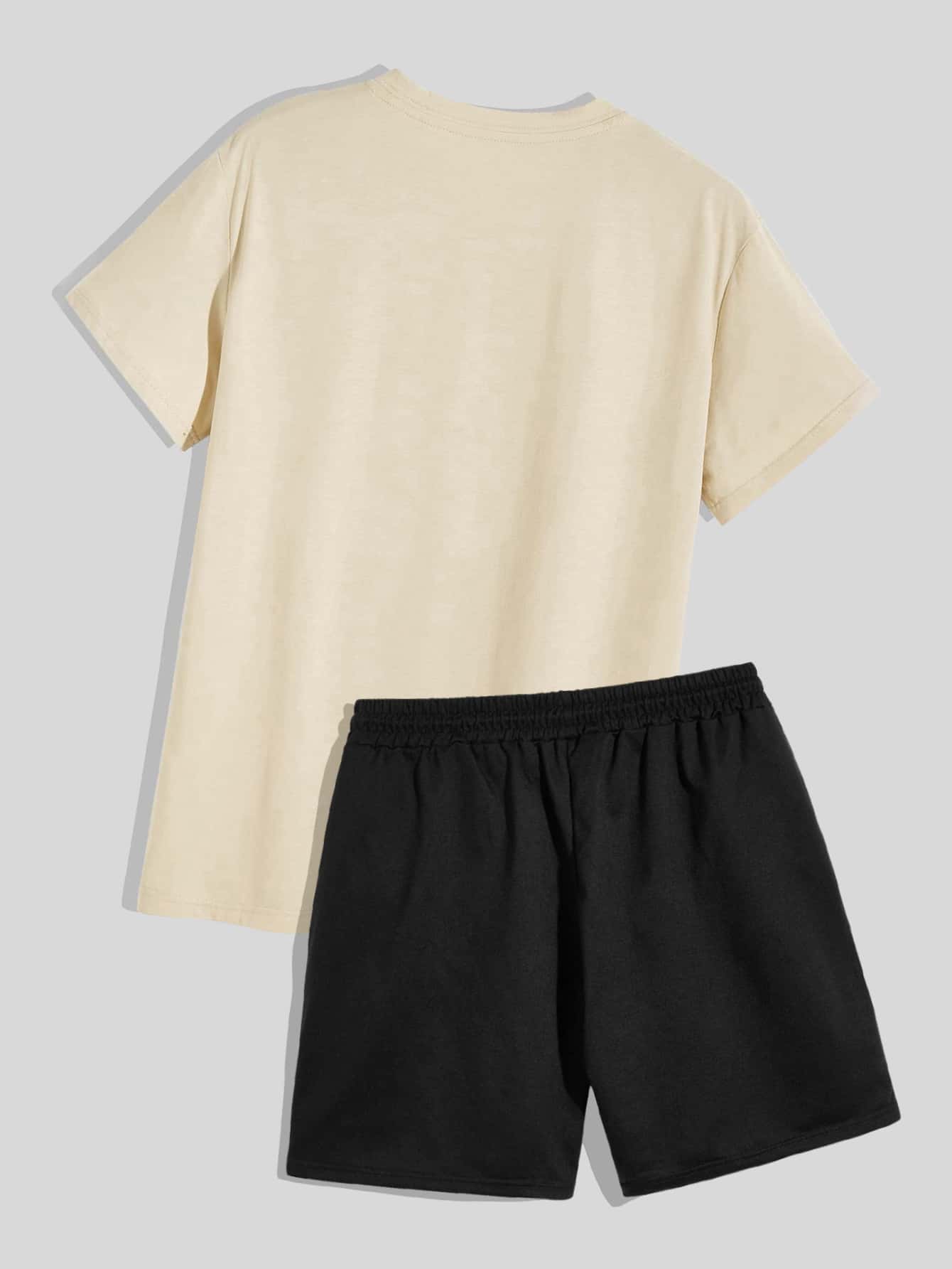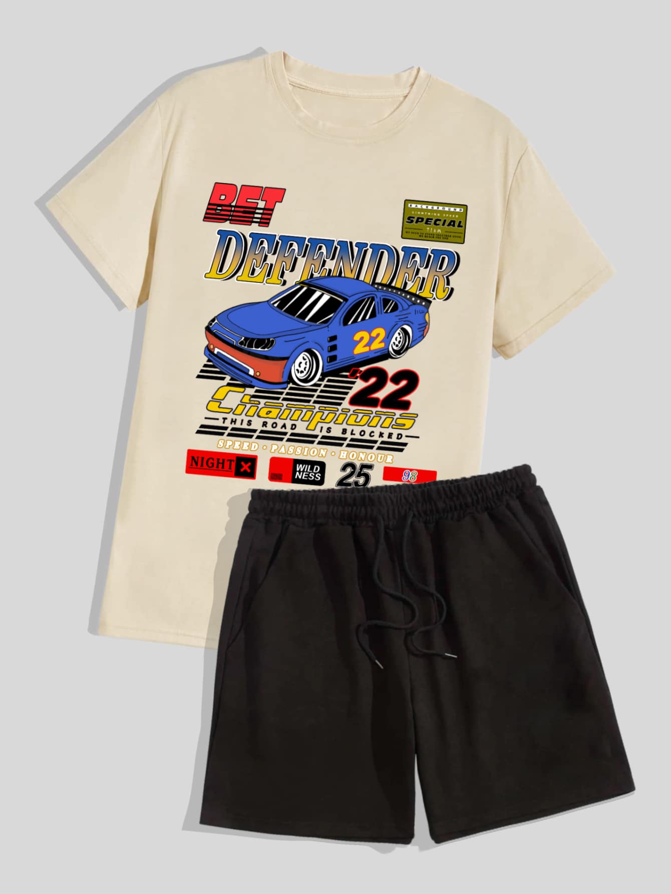 Hombres Camiseta algodón con estampado de coche y letra & Shorts de cintura con cordón