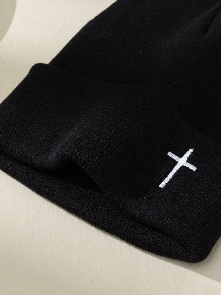 1 pieza Gorro unisex con bordado de cruz, estilo Y2K, cálido y transpirable, de punto de moda, adecuado para uso diario y actividades al aire libre, gorro de Halloween, atuendo de otoño