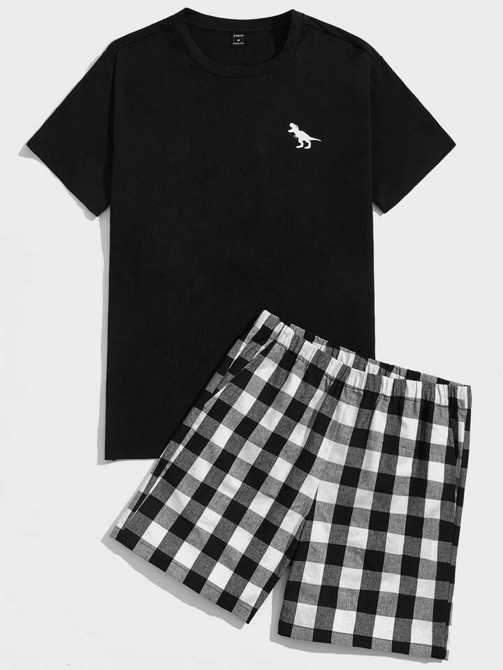 Hombres Conjunto de pijama Camiseta con estampado de dinosaurio con Shorts de cuadros