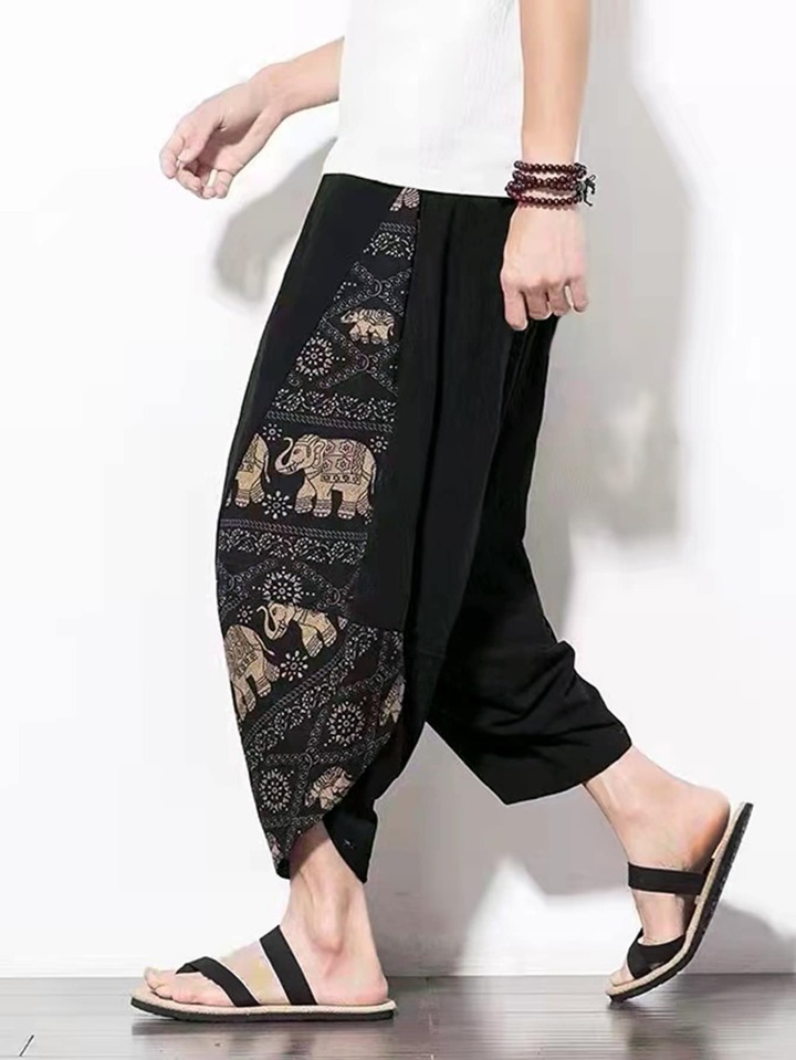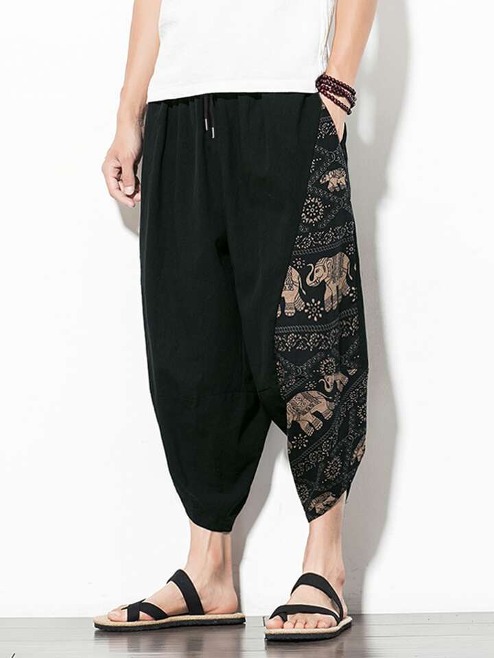 Pantalones holgados de talle con cordón con estampado de elefante, de colores combinados, para salir en otoño