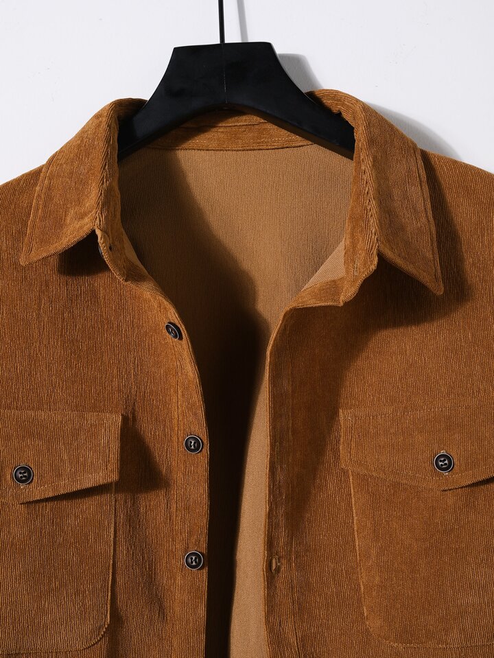 Hombres Camisa con bolsillo con solapa con botón de pana sin camiseta