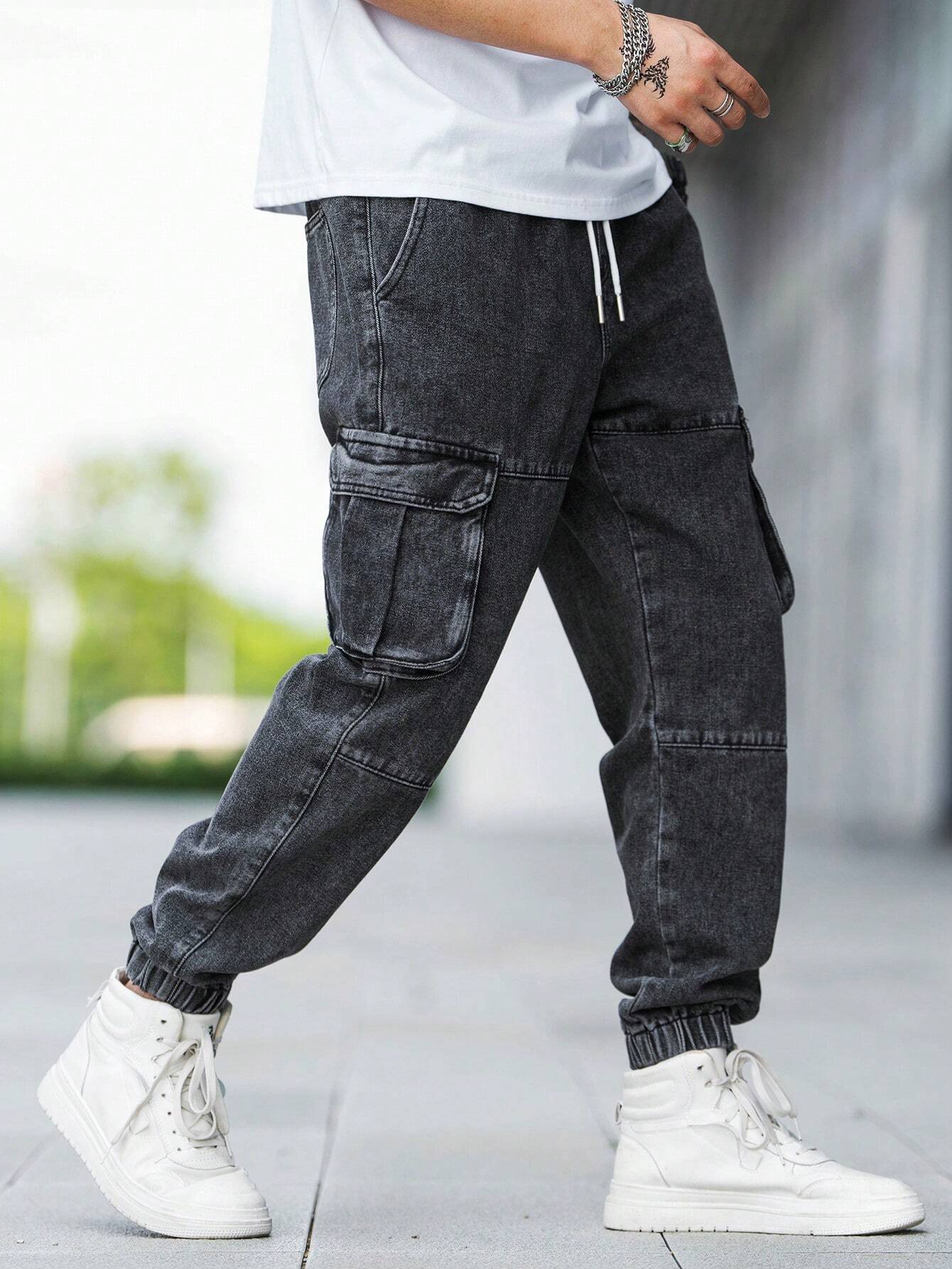 Hombres Jeans cargo con bolsillo con solapa de cintura con cordón