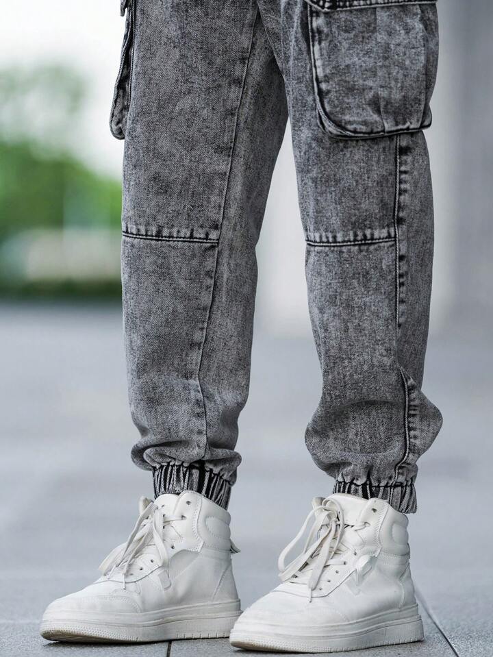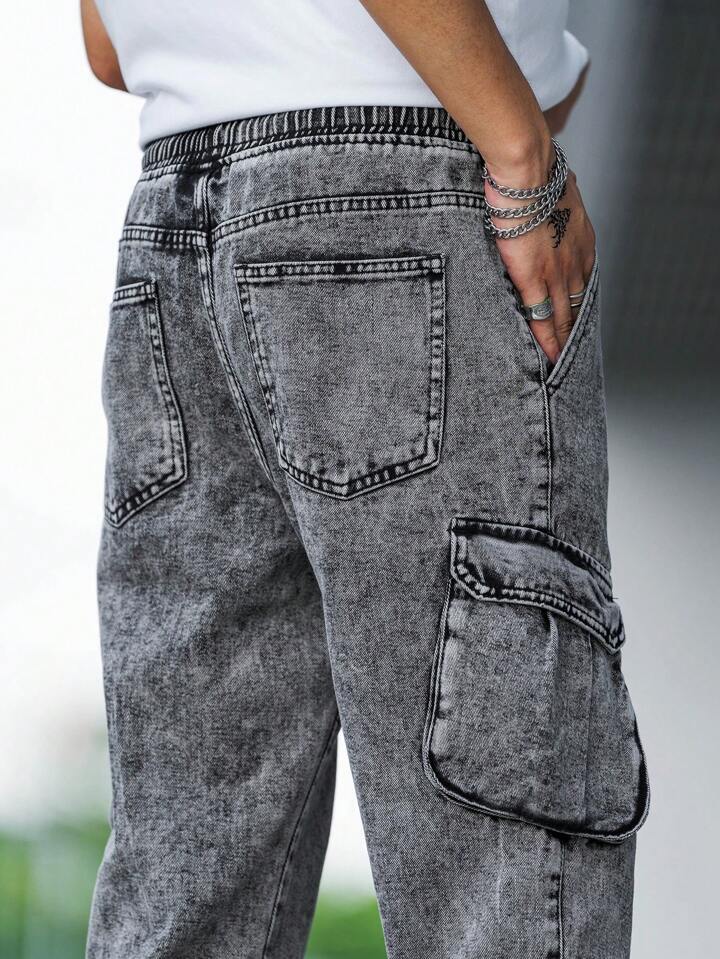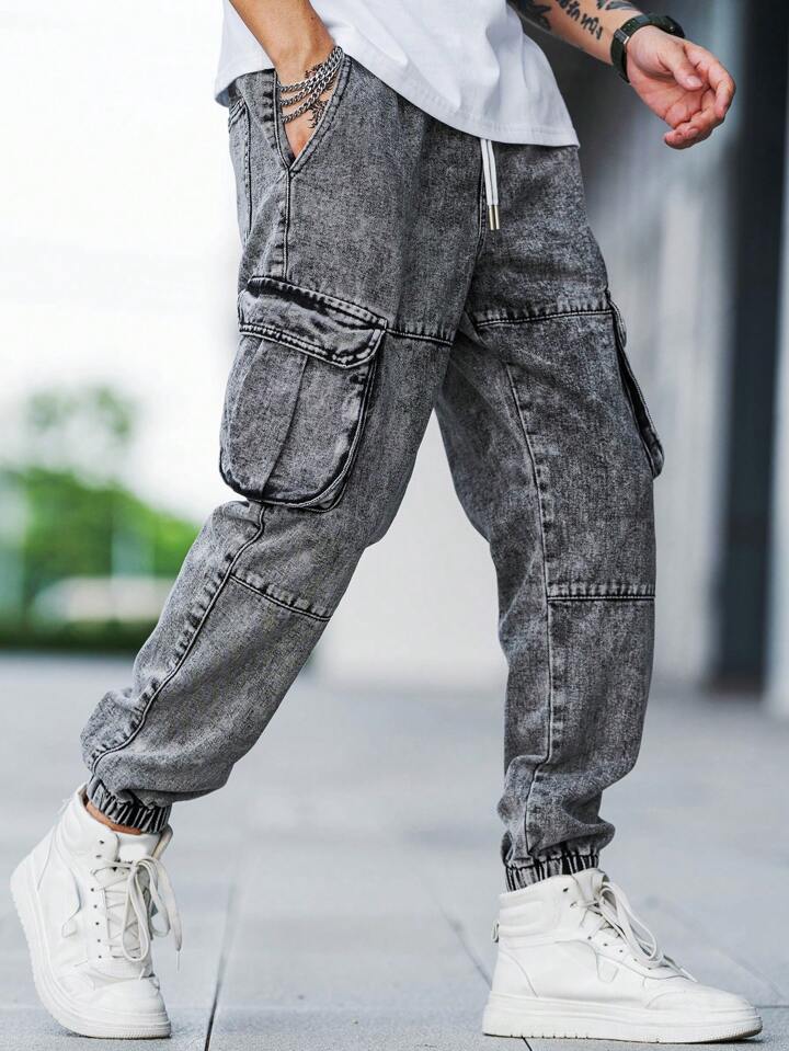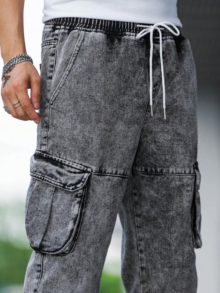 Hombres Jeans cargo con bolsillo con solapa de cintura con cordón