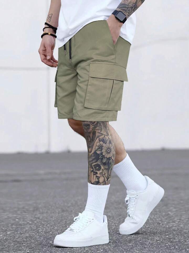 Hombres Shorts con bolsillo con solapa de cintura con cordón cargo