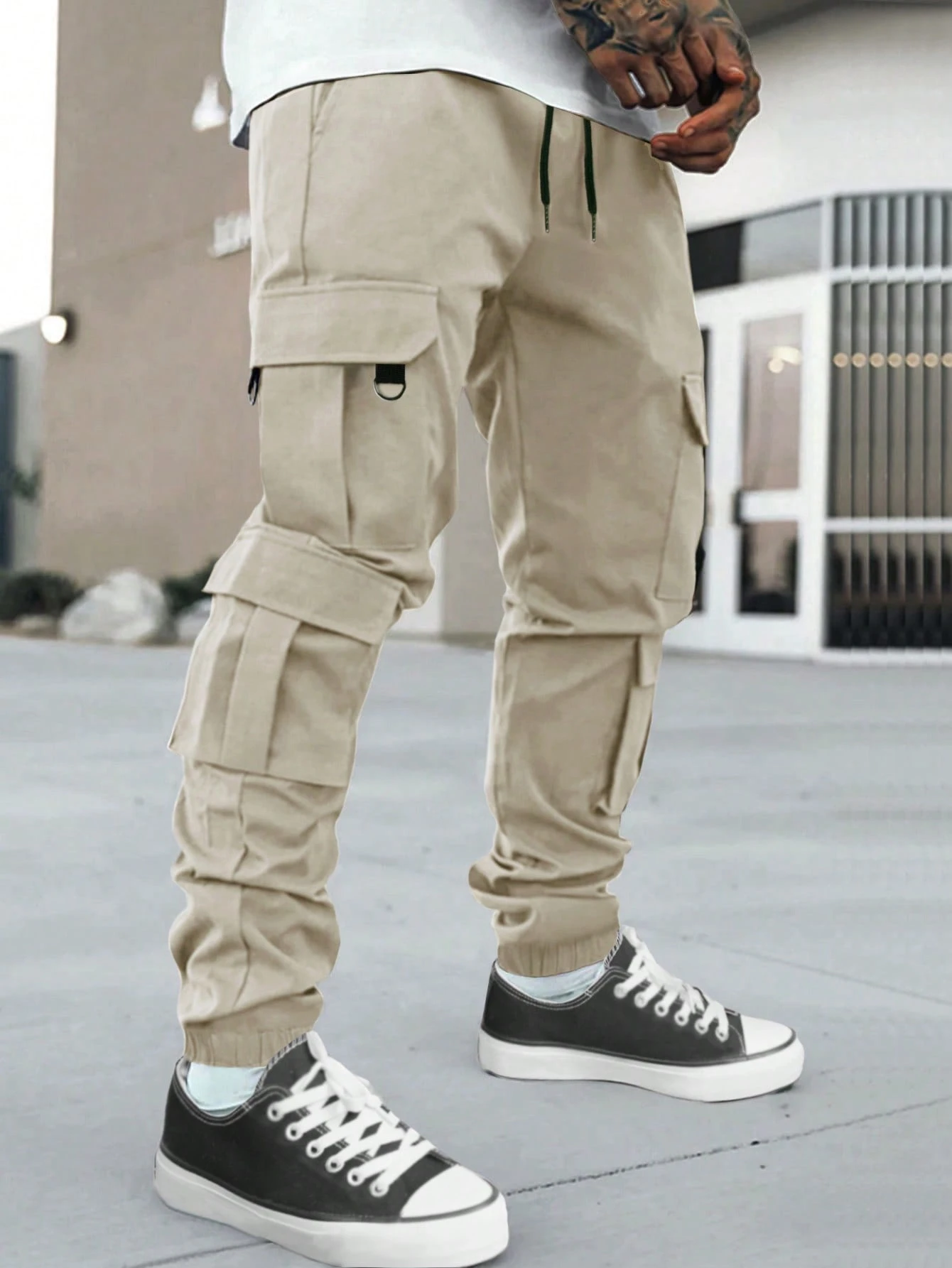 Hombres Pantalones cargo con bolsillo lateral con solapa de cintura con cordón