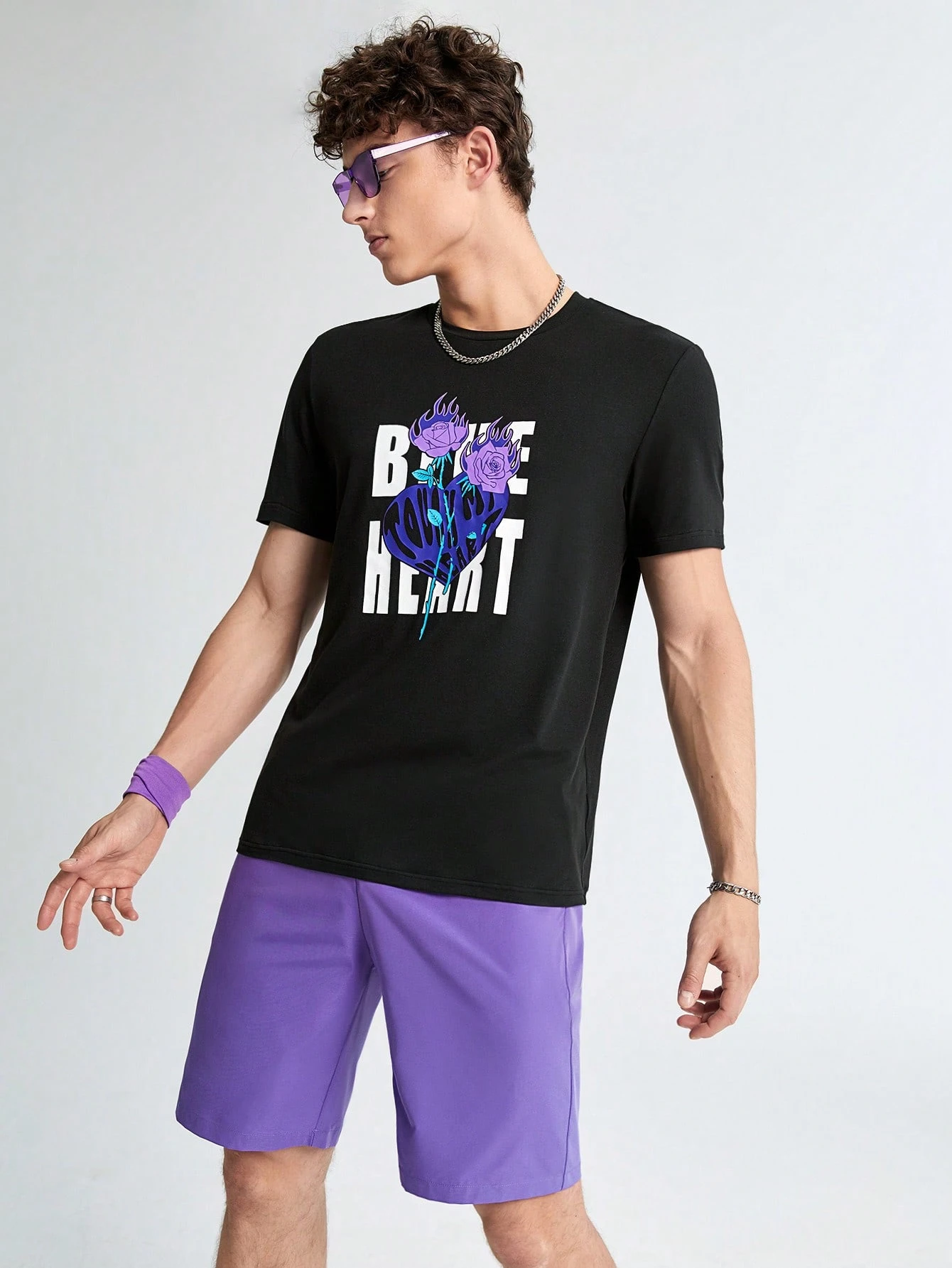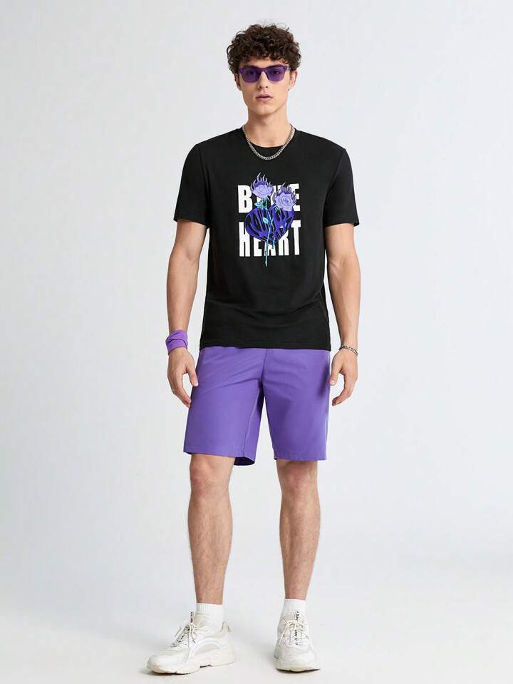 Hombres Shorts con camiseta con estampado floral con letra