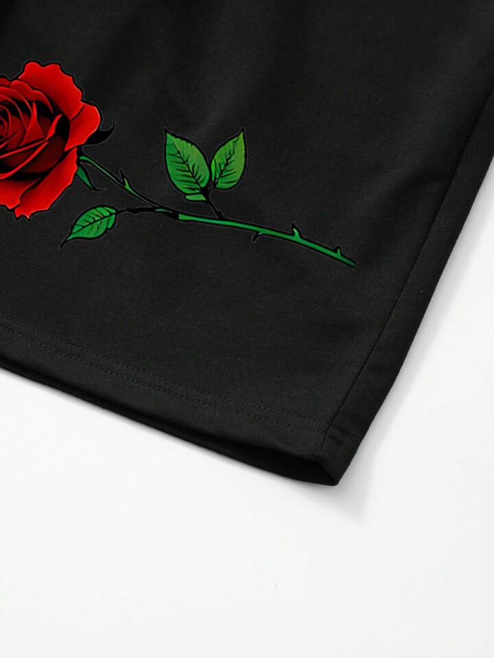 Hombres Shorts con estampado floral con slogan de cintura con cordón