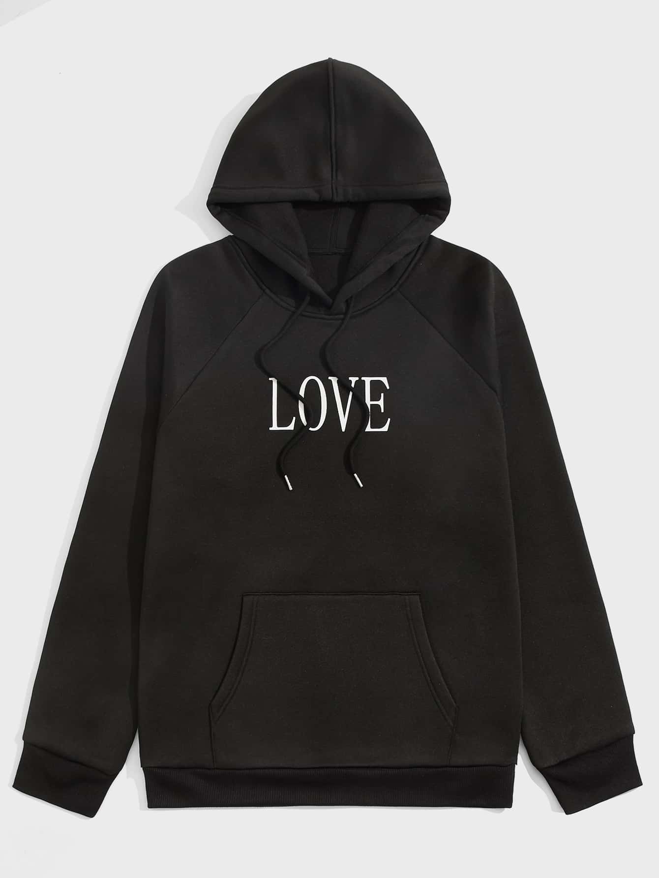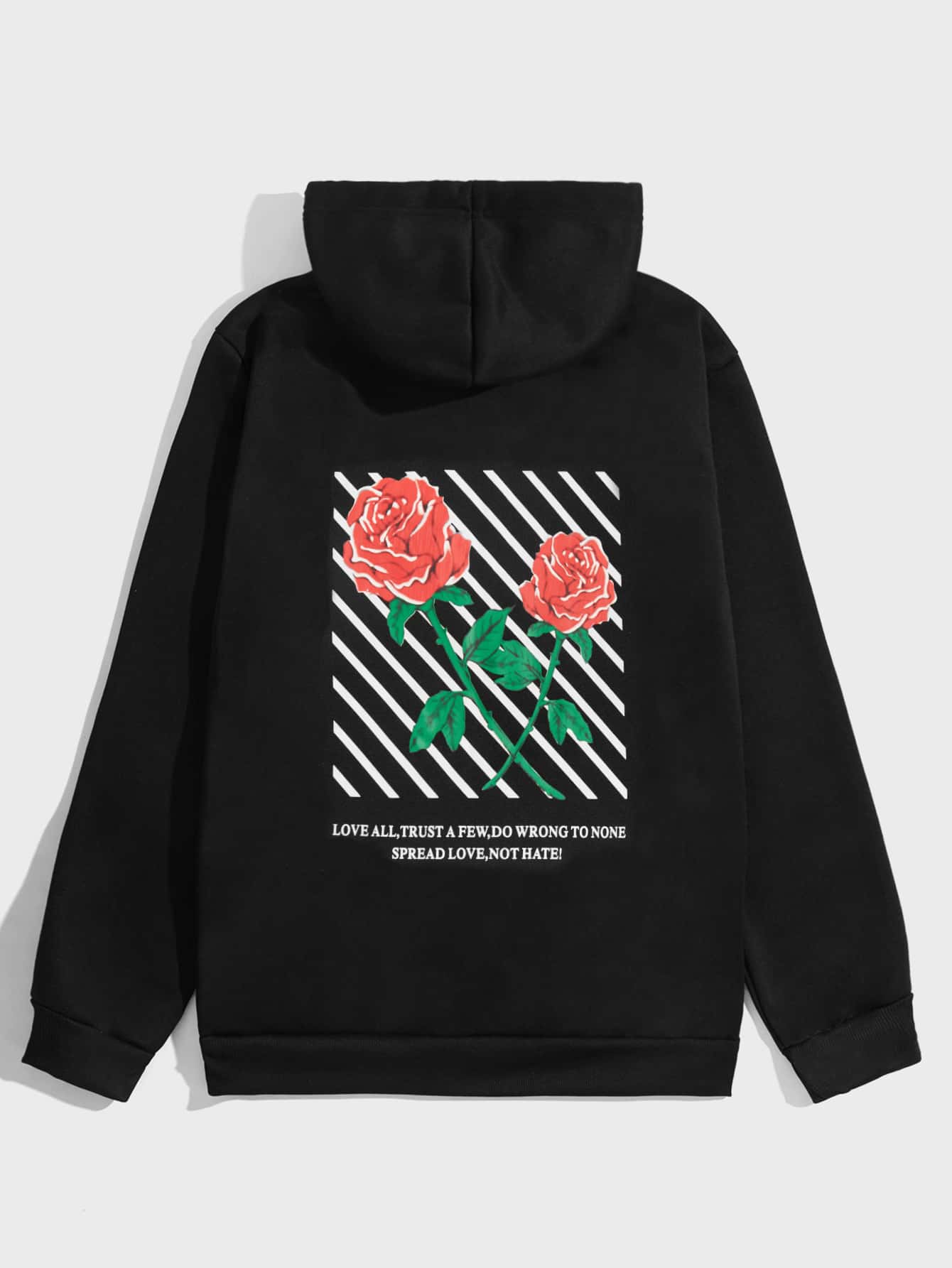 Hombres Capucha floral con estampado de slogan con forro térmico