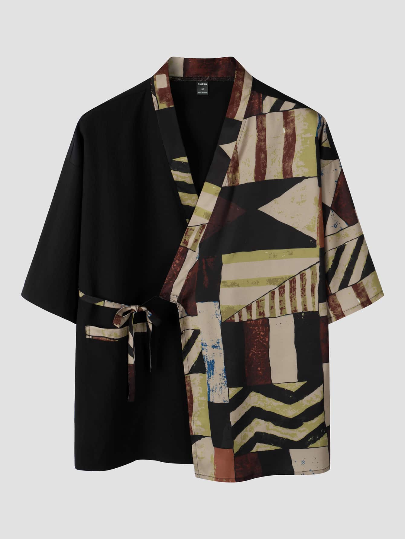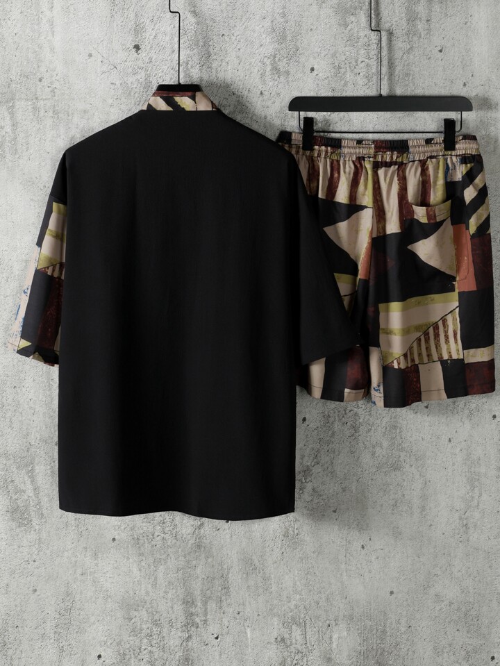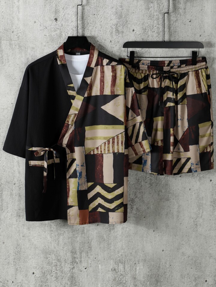 Hombres con estampado geométrico Kimono & Shorts sin camiseta