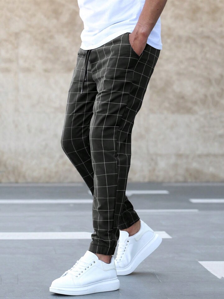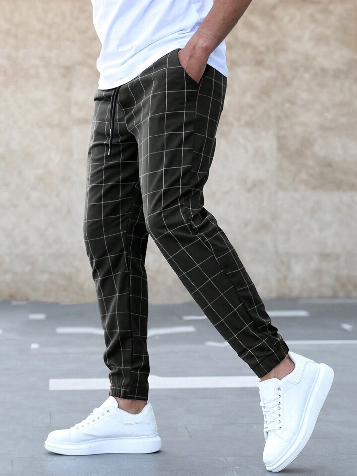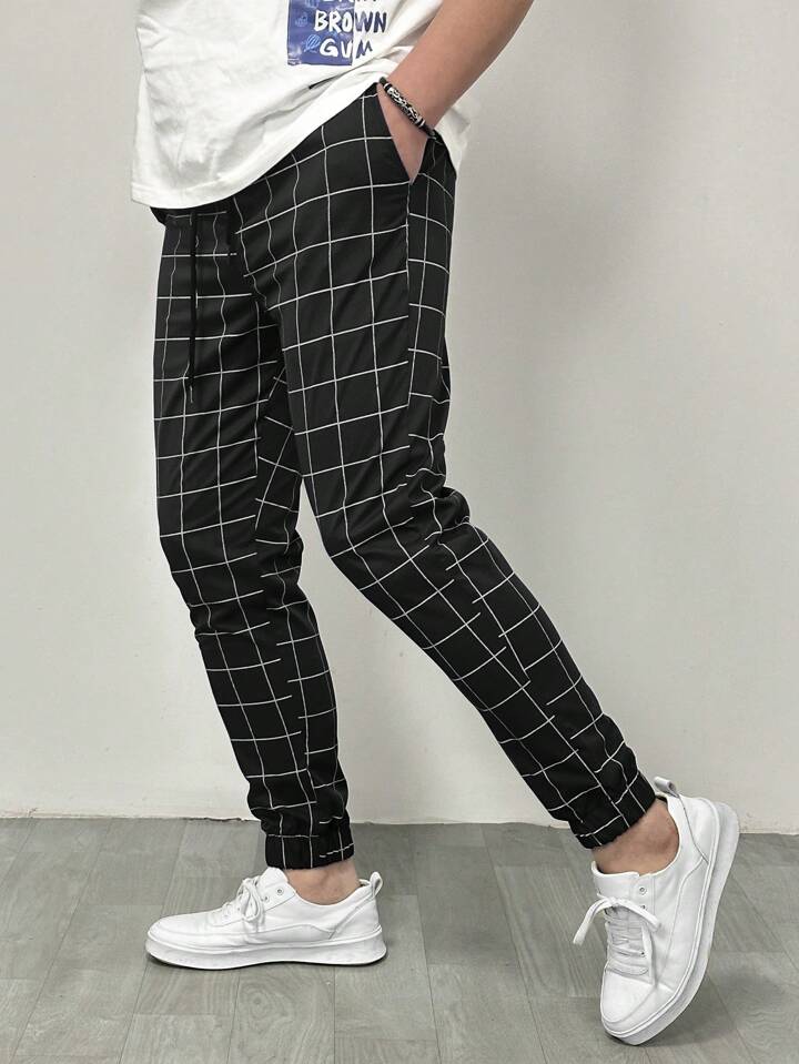 Pantalones holgados con estampado de cuadrícula y cordón en la cintura, para otoño