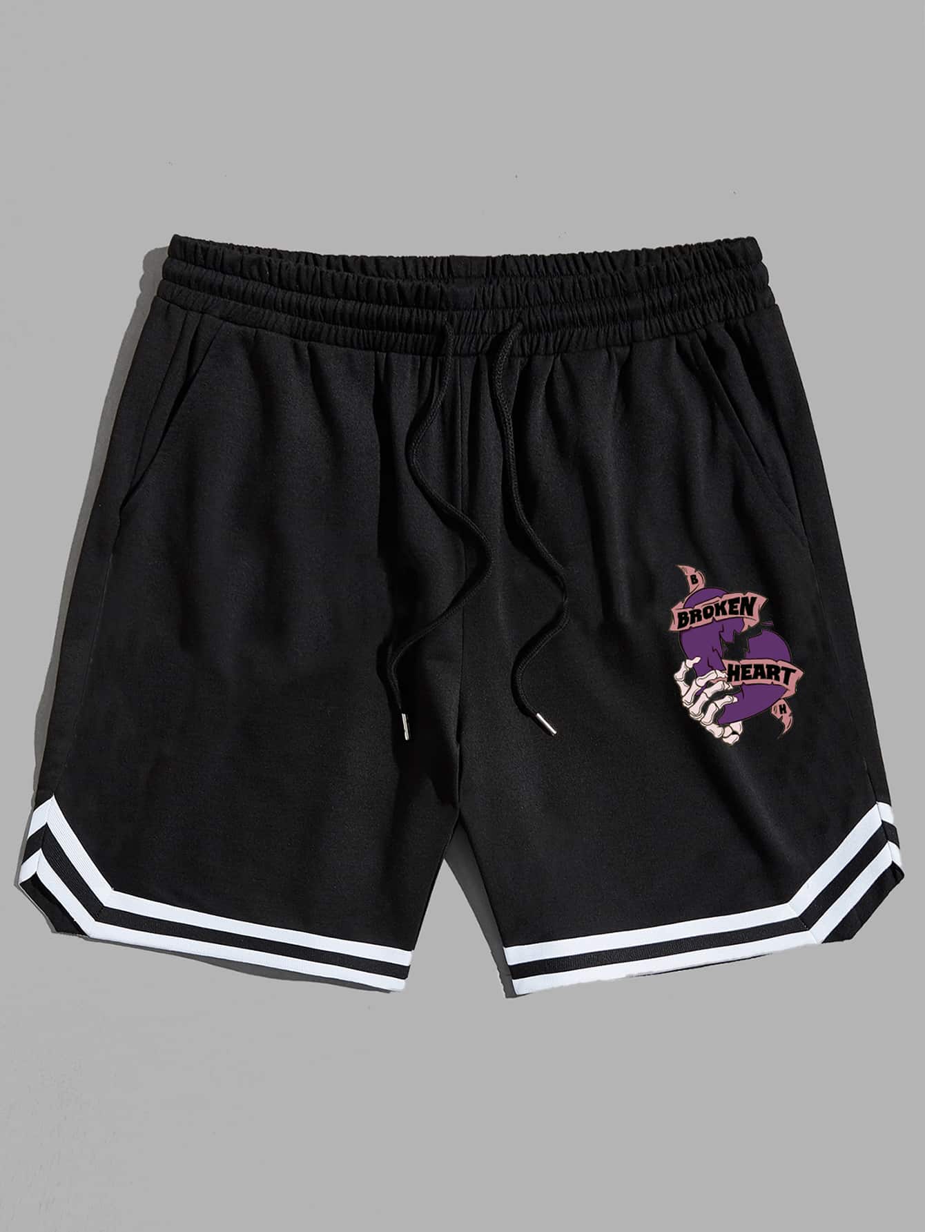 Hombres Shorts con corazón & con estampado de mano ribete de rayas