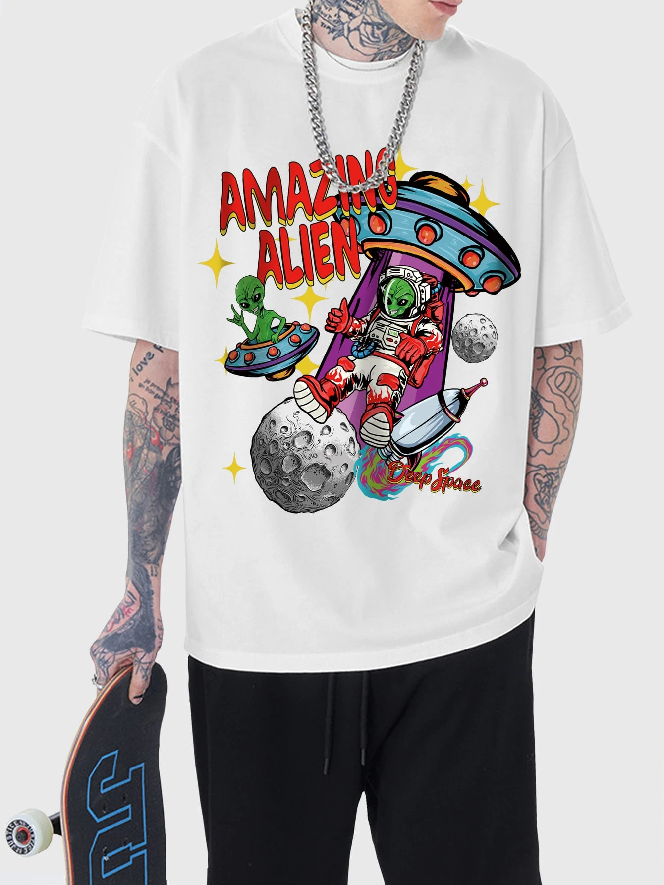 Hombres Camiseta con letra con dibujos animados con estampado de extraterrestre